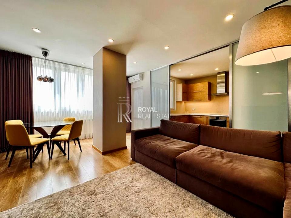 Пропонується сучасна квартира з продуманим плануванням та якісним ремонтом у нейтральних тонах. У квартирі два санвузли, шумоізоляція, дитяча кімната або кабінет, що підходить для роботи з дому.