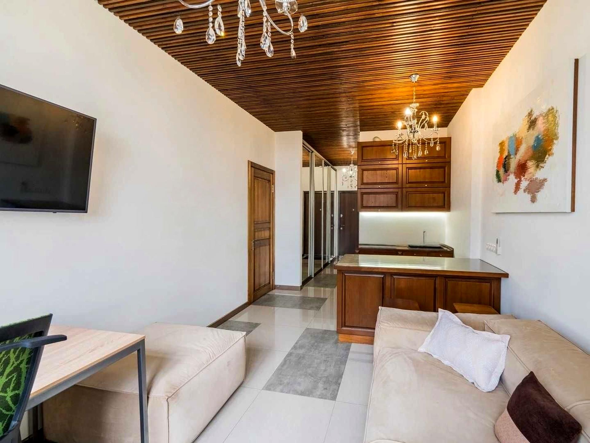 Кухня - вітальня, окрема спальня с великим ліжком та телевизором.Багато місця для збереження речей Вікна броньовані.