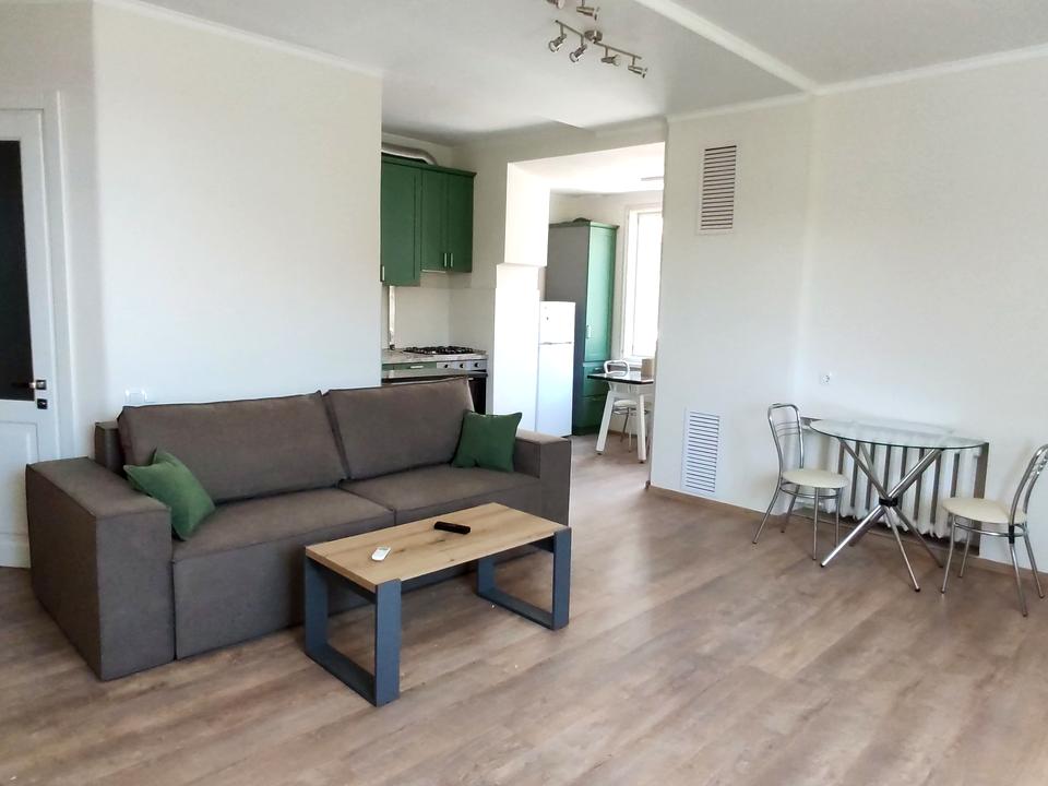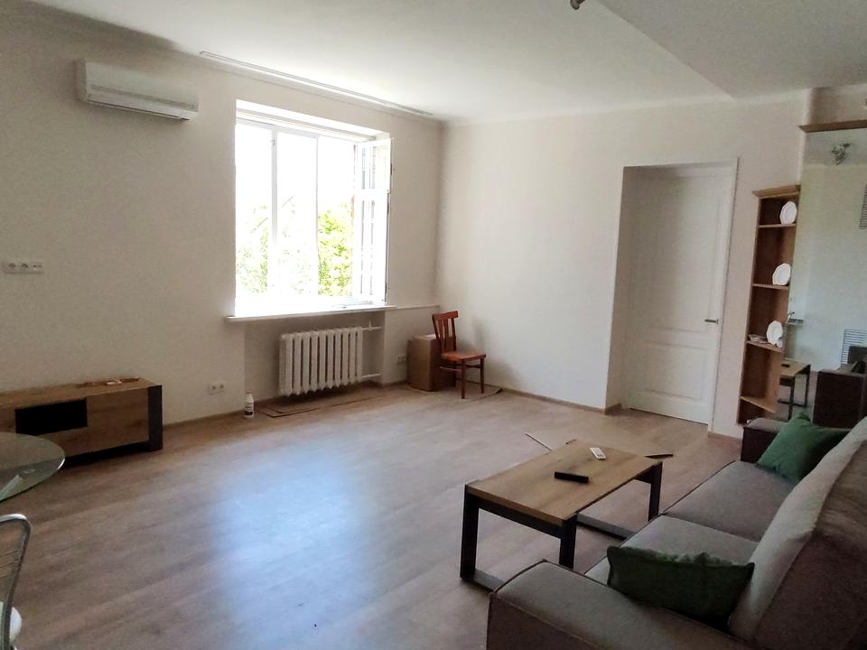 Вулиця Лабораторна 33/37. Площа 55/20/28, квартира-студія з окремою спальнею 20м2. Висота стелі -3метри, сталінка, поверх-4/5эт. цегляний будинок. Квартира після капітального ремонту з переплануванням, всі меблі та техніка нові. Чудове місце розташування-тихий двір, центр Києва, метро Палац Україна в 7хв. ходьби. На подвір'ї завжди знайдеться місце для вашого авто. В 100 метрах від будинку підземний паркінг який слугує бомбосховищем. Ціна 25000грн.+ком.послуги.