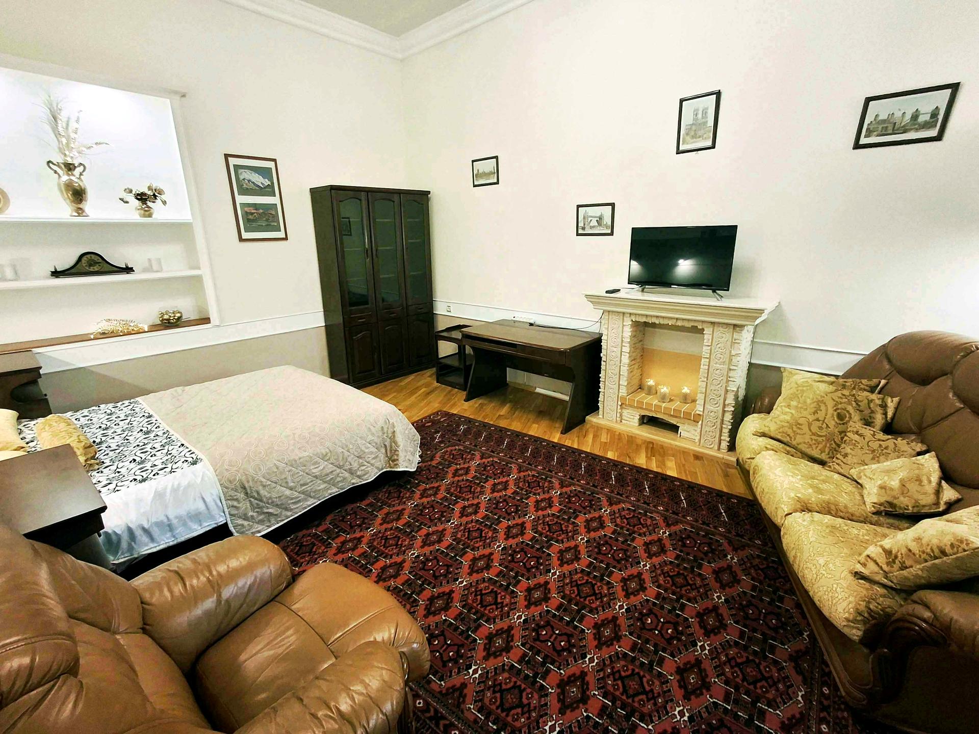 В квартирі 1 кімната, Технологія будівництва - Цегляна, Тип будинку - Дореволюційний. В квартирі є Телевізор, Праска, Шафа, Холодильник, Ліжко, Пральна машина, Мікрохвильовка, Кондиціонер, Душова кабіна, Посудомийна машина. Загальний стан квартири - З ремонтом. Без комісії