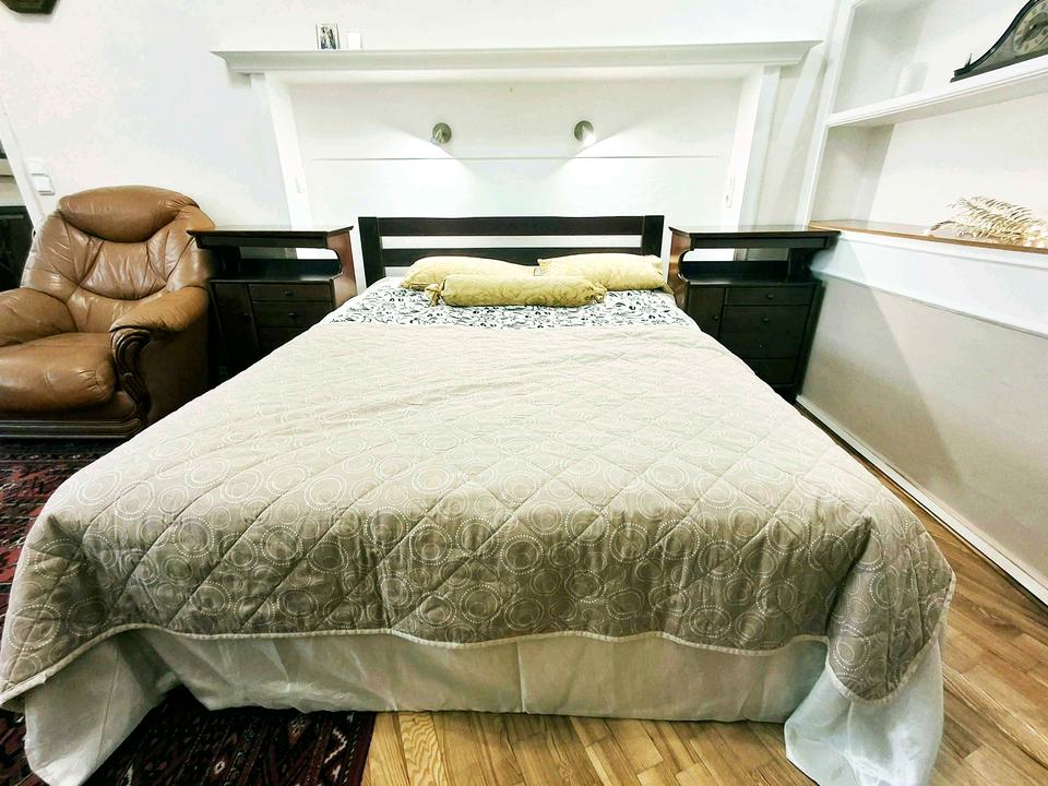 Полностью обставлена дорогой мебелью из натурального дерева и импортной бытовой техникой. В квартире есть: