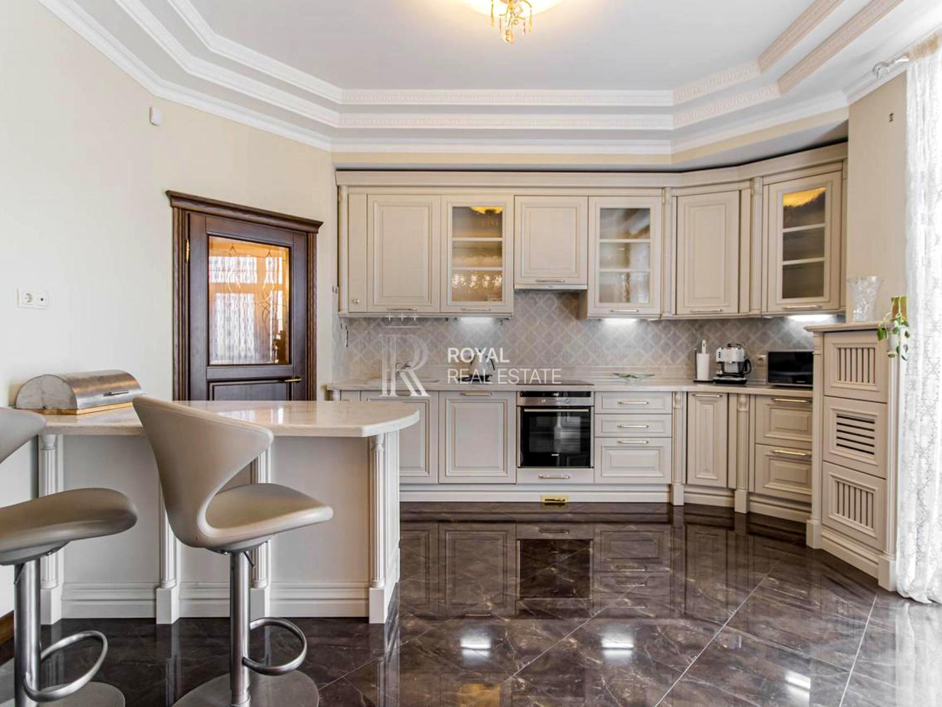 - Простора функціональна планування: велика кухня-зал з барною стійкою, господарська спальня з окремою ванною та душем, кабінет, дитячагостьова спальня, три засклених балкони.