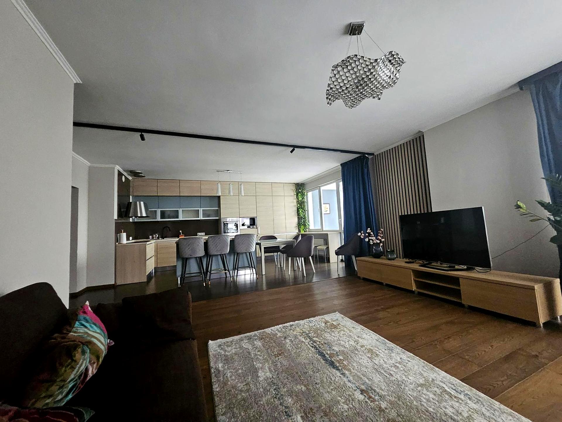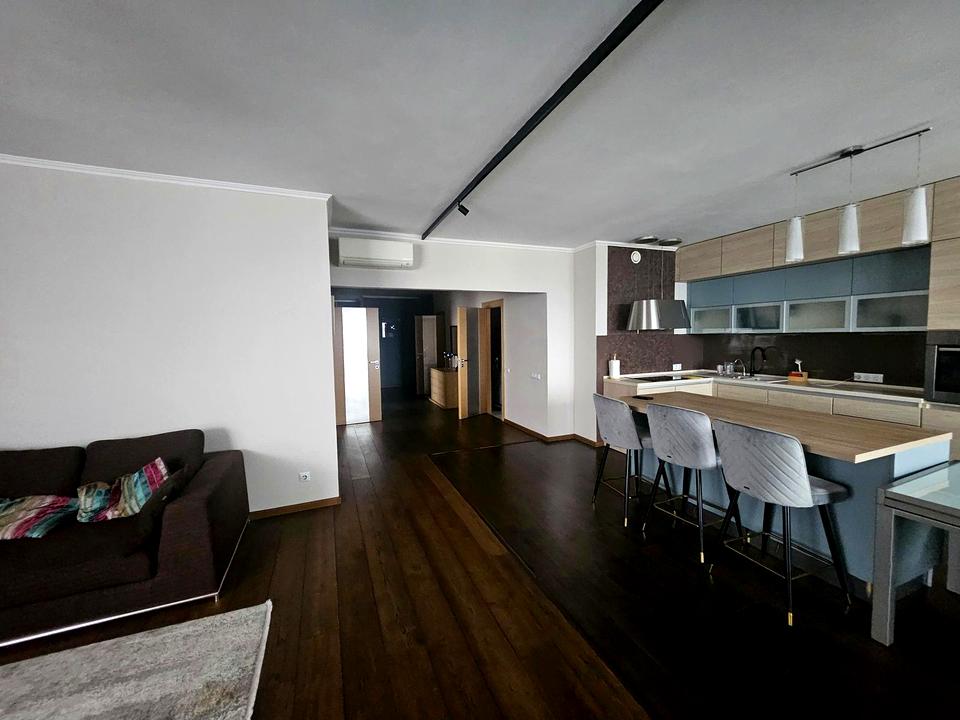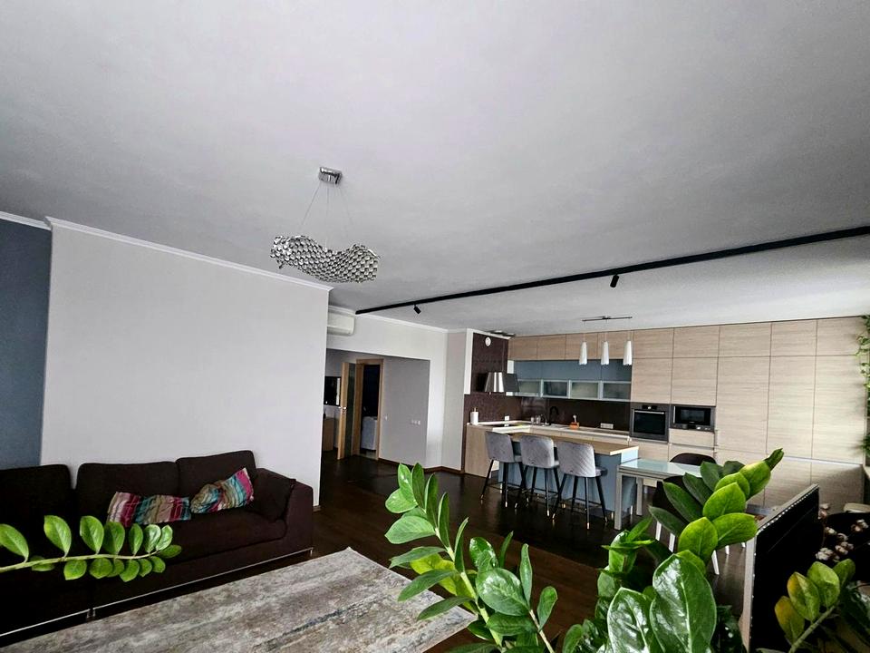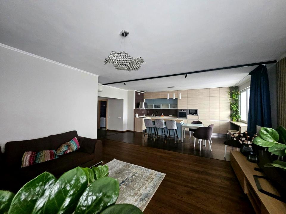 3 окремі спальні і простора кухня -вітальня, 2 сан вузли,2 балкона, гардеробна кімната. Сучасна техніка і меблі.