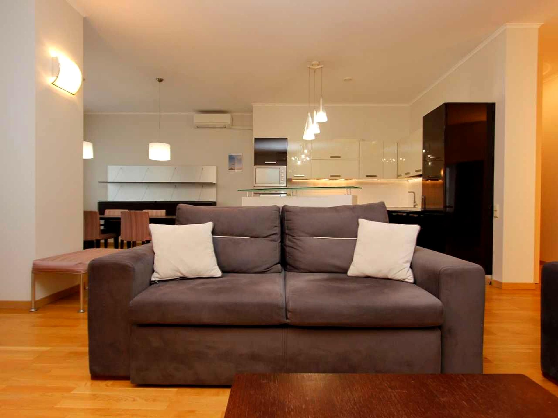 Квартира повністю мебльована, вся необхідна побутова техніка, якісна кухня з вбудованою технікою.