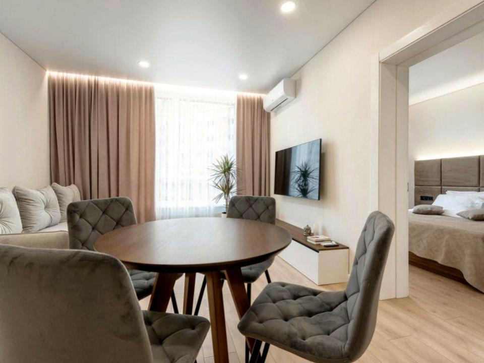 У квартирі виконано якісний ремонт, повністю мебльована, встановлена вся необхідна техніка, кондиціонер, бойлер, велика гардеробна, фурнітура Blum.