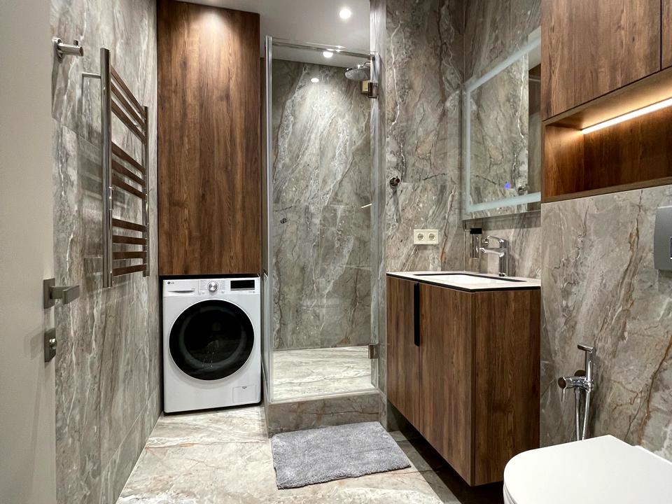 Бойлер, пралка-сушка, кондиціонер, телевізор.