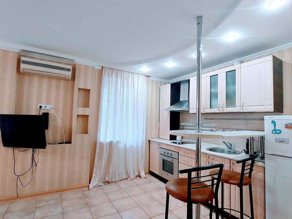 В квартирі 1 кімната, Технологія будівництва - Цегляна, Тип будинку - Спец. проект. Планування кімнат Студія. В квартирі є Телевізор, Кабельне ТБ, Праска, Шафа, Ліжко, Кондиціонер, Пральна машина, Душова кабіна, Холодильник, Лічильники. Загальний стан квартири - З ремонтом. Терміново. Без комісії