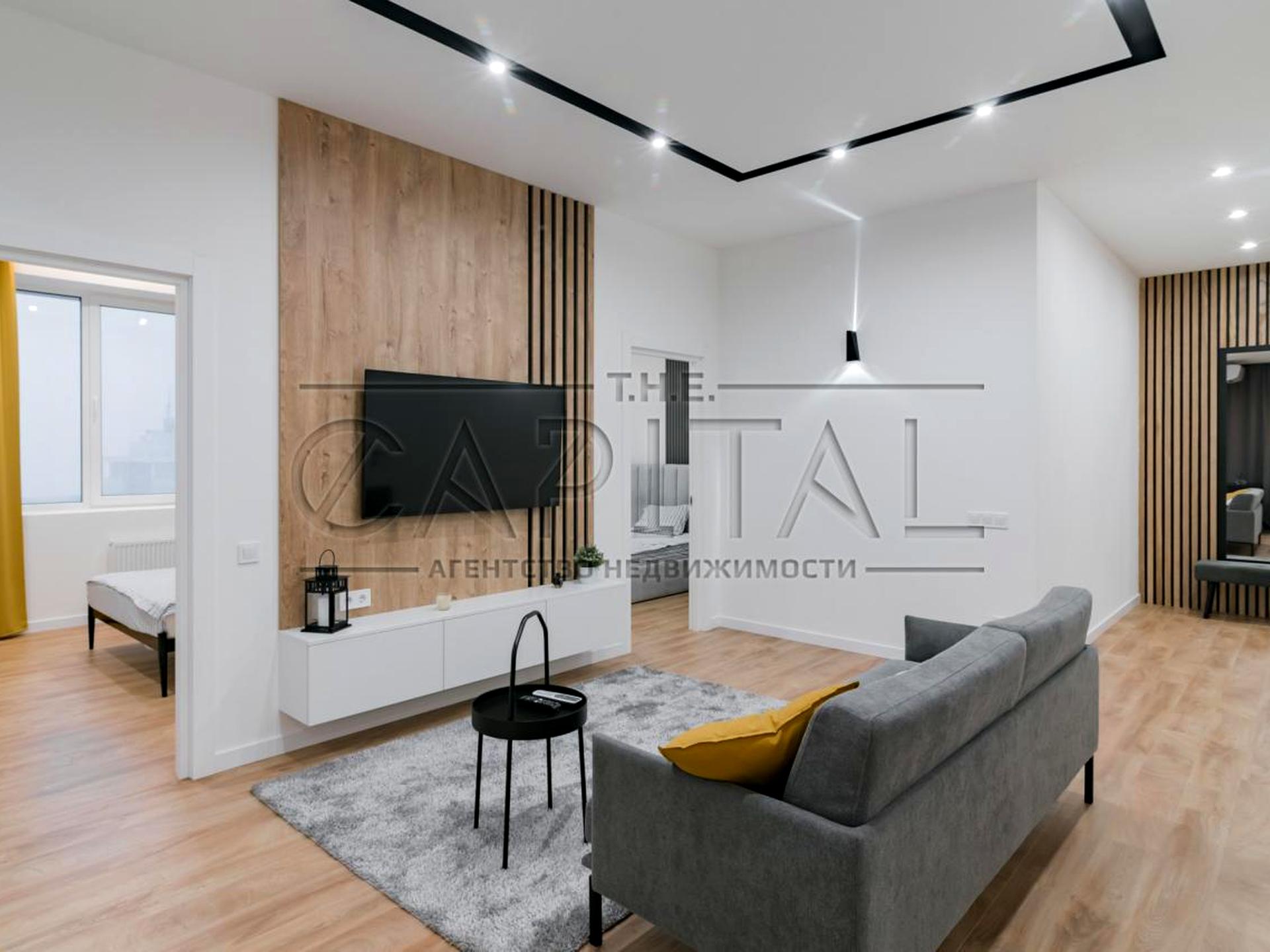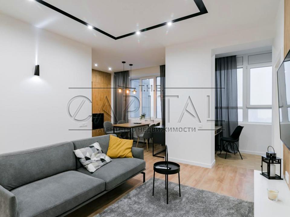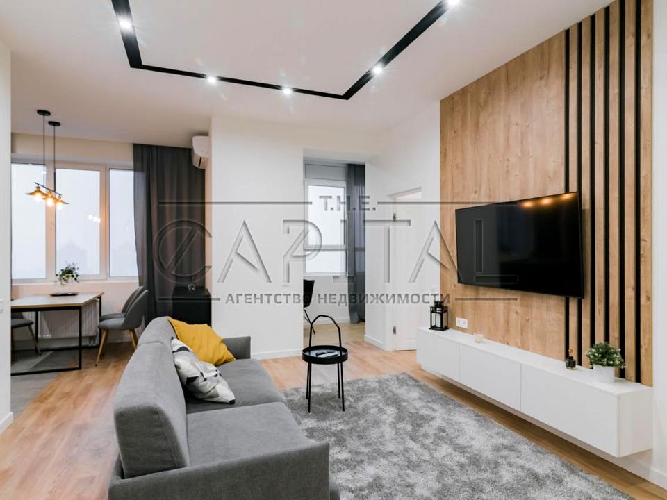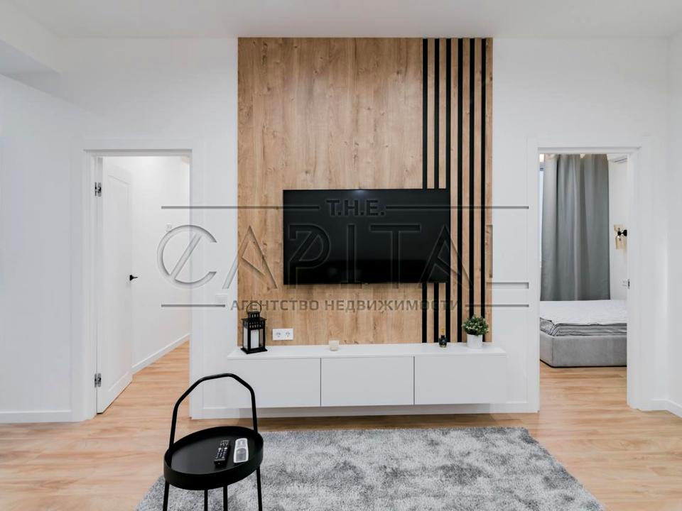 Квартира оснащена сучасними меблями. У кожній кімнаті місткі шафи, телевізор, кондиціонер, зручні ліжка з ортопедичними матрацами. На кухні великий вбудований холодильник, посудомийна машина, індукційна варильна панель, витяжка, кондиціонер, мікрохвильова піч, духова шафа. В еркері відведено місце для роботи та відпочинку. У коридорі, кухні, санвузлі підлога з підігрівом. Лічильники на світло, воду, тепло. Панорамні вікна.