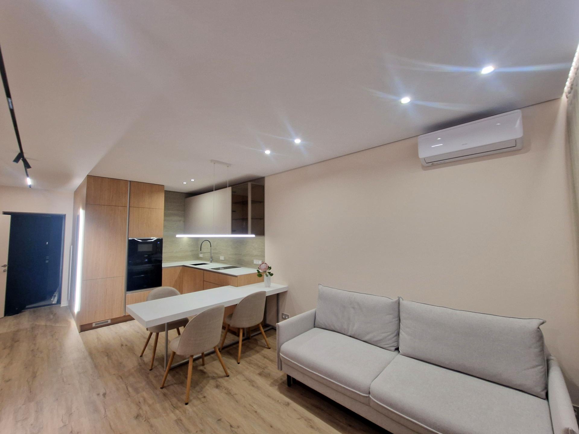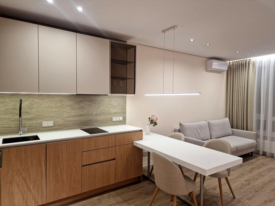 В квартирі 2 кімнати, Технологія будівництва - Монолітно-каркасна, Тип будинку - Спец. проект. Вид з вікон у двір, на місто. Планування кімнат Суміжно-роздільна. Є гаряча вода. Опалення автономне. Суміщений санвузол, Туалет/душ. В квартирі є Телевізор, Кабельне ТБ, Шафа, Ліжко, Підігрів підлоги, Кондиціонер, Пральна машина, Душова кабіна, Холодильник, Мікрохвильовка, Посудомийна машина, Лічильники. Будинок побудований в 2024 році. Загальний стан квартири - З ремонтом. Консьєрж, Охорона. Поруч є супермаркет, розважальні заклади, зупинки, дитсадок, школа, парк, річка/озеро, ліс. Безбар'єрність: вхід у будинок на рівні землі, дверні отвори в будинку шириною понад 0.9 м, паркувальні місця для осіб з інвалідністю, ліфт, пристосований до крісла колісного. Інтернет бездротовий. Працює без світла - вода, опалення, інтернет, ліфт. Комісія за послуги 50 %