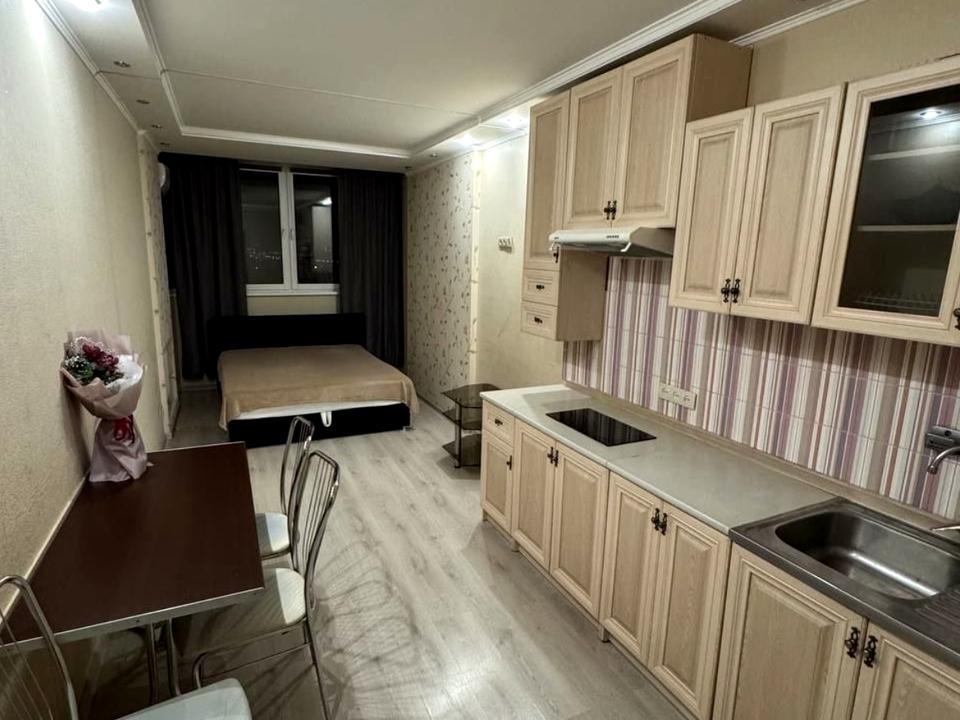 В квартирі 1 кімната. Планування кімнат Студія. В квартирі є . Загальний стан квартири - З ремонтом. Працює без світла - вода, опалення, ліфт. Комісія за послуги 50 %