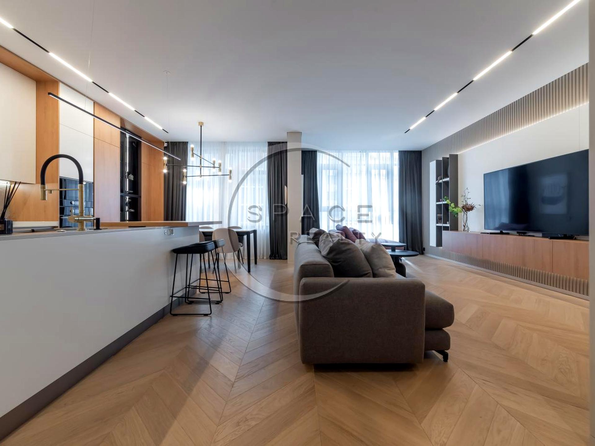 Квартира повністю укомплектована меблями та технікою від провідних виробників. ЖК Новопечерські Липки це клас Бізнес , що включає власні навчальні заклади, паркові зони, паркінги, магазини і спортивні клуби (один з яких з відкритим басейном). Є також охорона та система відеоспостереження. Оскільки житловий комплекс відноситься до преміум класу, його технічне обслуговування знаходиться на найвищому рівні. Перевагою є наявність підземного паркінгу в будинку, що забезпечує безпеку для працівників під час повітряних тривог.