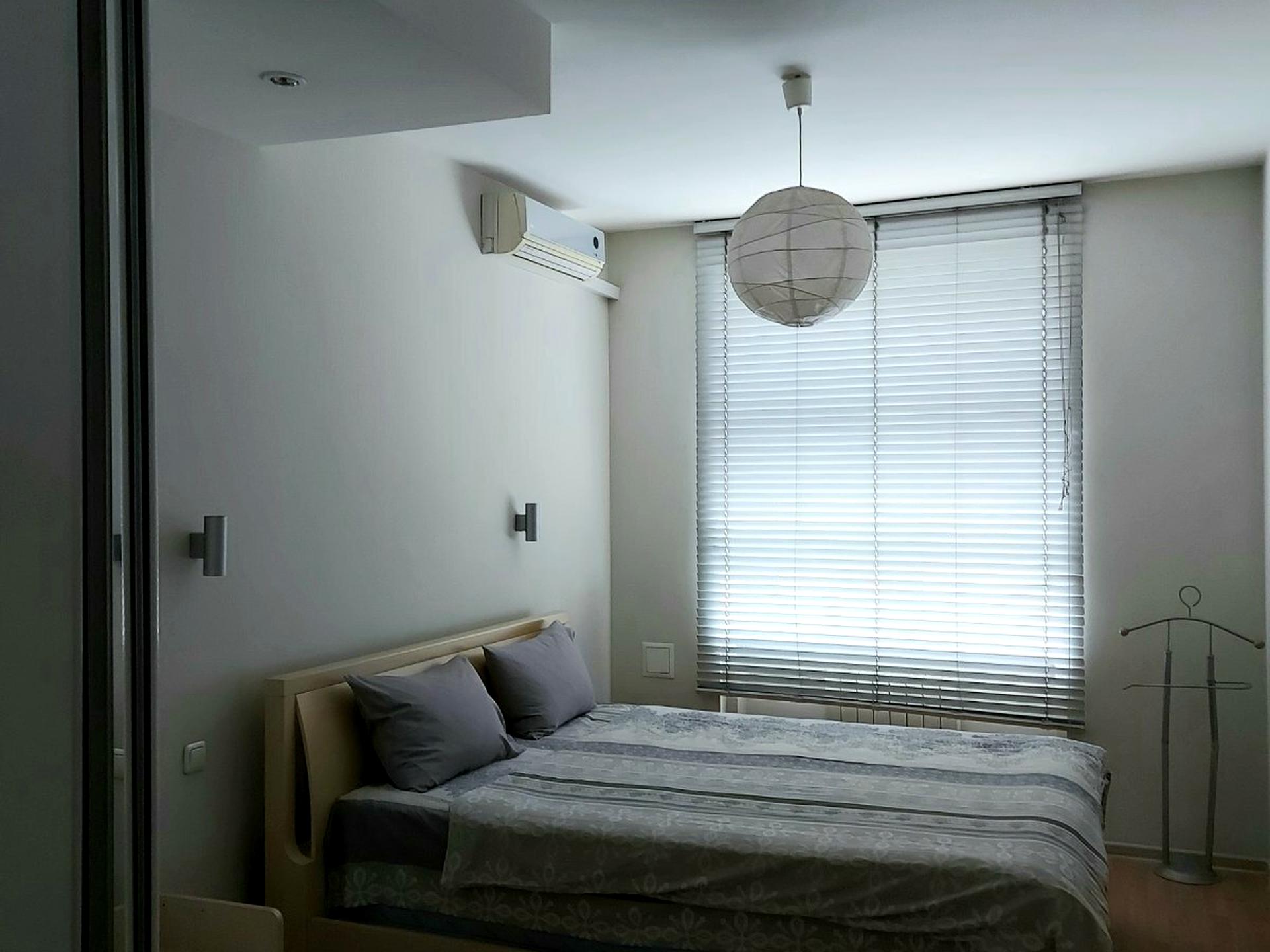 Комфортная и логичная планировка квартиры с одной спальней 16 м.кв. и гостиной-столовой 37 м.кв. Все вместе – 71 м.кв разумно использованной площади. Полноценная кровать в спальне и дополнительные раскладные диваны в гостиной. Небольшая, но удобная кухня 8м.кв. Необходима техника и мебель, обе комнаты с кондиционерами. Санузел совмещенный, с полноценной ванной 4.7. м.кв.