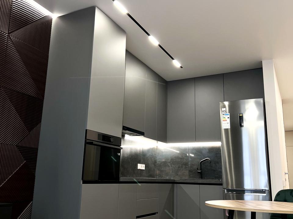По всій квартирі встановлено якісне освітлення з різними сценаріями, а також система антипотоп.
