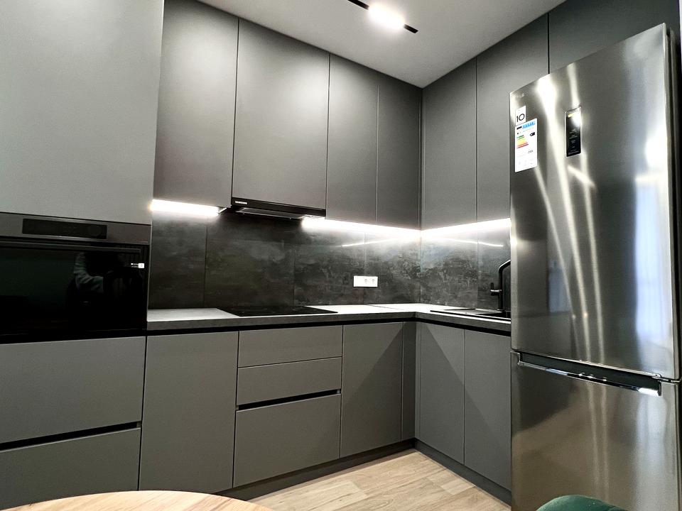КУХНЯ: Виконанна в графітовому кольорі, обладнана всією технікою: