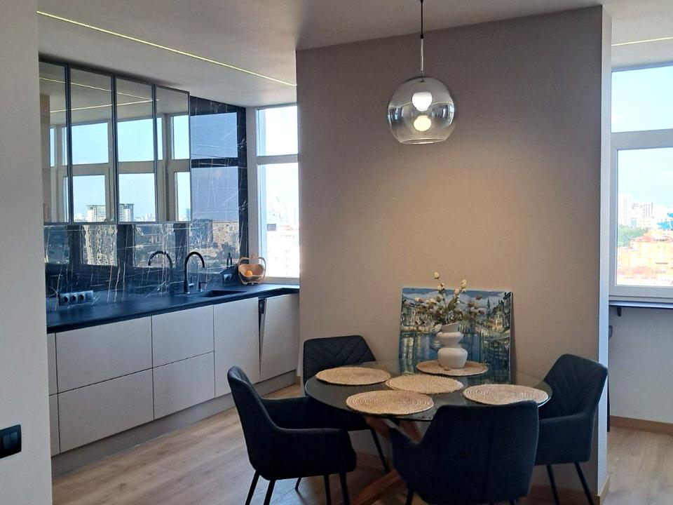 Пропонується квартира в престижному ЖК Elyseum за адресою: вул. Ростиславська (колишня Маршала Рибалка), 5-Б. Квартира абсолютно нова, перша здача після якісного дизайнерського ремонту. Планування включає простору кухню-студію, дві окремі спальні та два санвузли. Передбачено велику кількість шаф для зберігання речей. Встановлено якісні алюмінієві вікна з подвійним склопакетом та мінімальною тепловіддачею. Житло повністю укомплектоване меблями та побутовою технікою провідних світових виробників. Є все необхідне для життя: телевізор, інтернет, кондиціонери, пральна машина, холодильник, посудомийна машина, праска, посуд. Встановлено всі лічильники. Про будинок: ЖК Elyseum — це новий будинок з продуманим стильним дизайном. Для мешканців доступні: власний фітнес-центр; лаунж-зона; 5 швидкісних ліфтів; охорона та відеоспостереження. За окрему плату можна орендувати місце в підземному паркінгу, що охороняється. В будинку є генератор, який забезпечує автономне живлення Інфраструктура та розташування: Будинок має вдале розташування з розвиненою інфраструктурою. На території є дитячий майданчик. У пішій доступності знаходяться ТЦ Квадрат, супермаркети, ринок, ресторани, аптеки, банки, Охматдит, школи та дитячий садок. Зручна транспортна розвязка: метро Лукянівська — 7 хвилин пішки; Центр міста — 15 хвилин пішки.