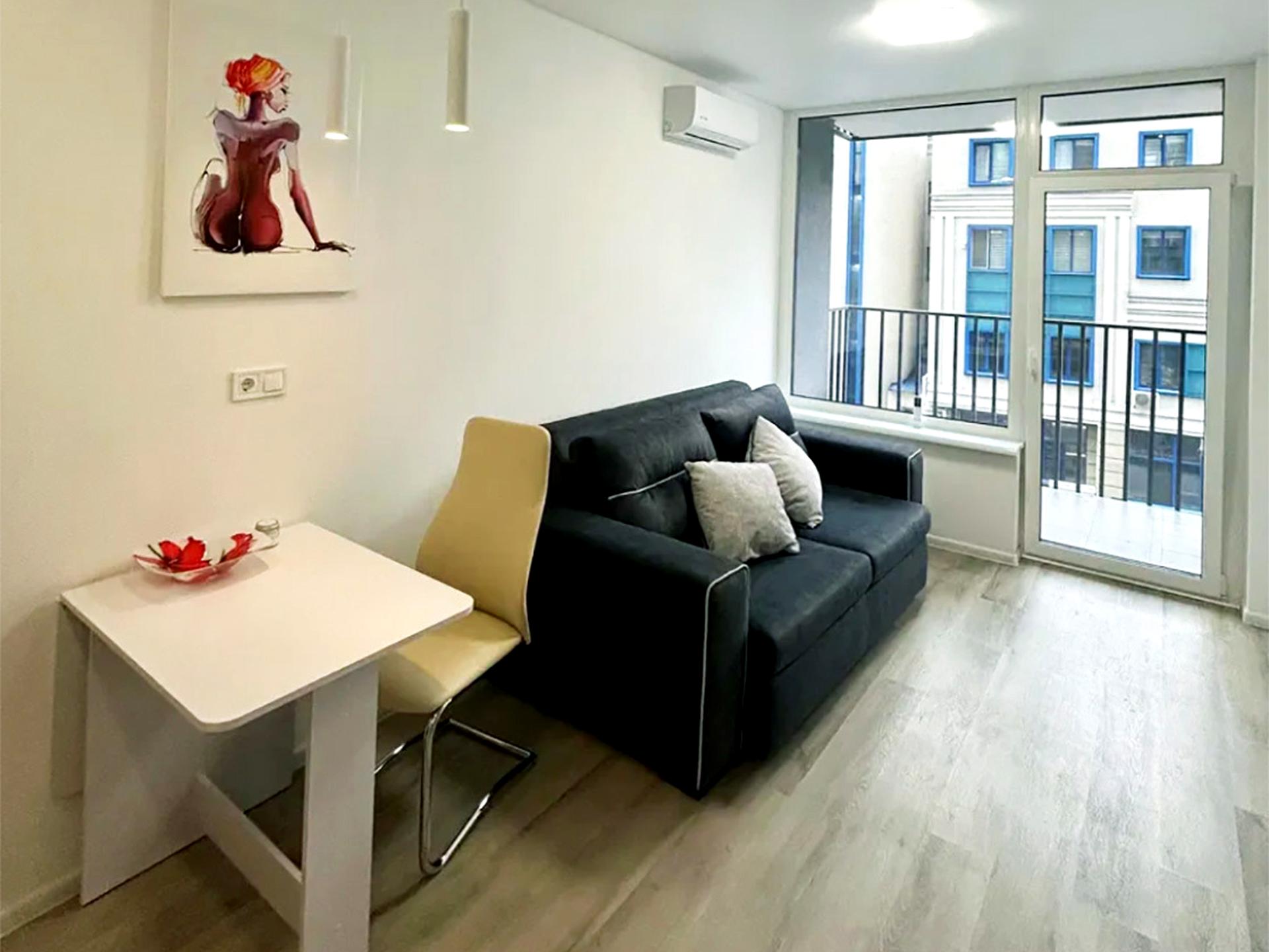 Квартира с новым современным ремонтом. Продуманная планировка включает светлую комнату с выходом на балкон, что придает простор и позволяет наслаждаться уютом ежедневно. В квартире есть вся необходимая техника и мебель: трансформируемый в кровать диван, духовой шкаф, холодильник, плита, вытяжка, стиральная машина, бойлер, душевая кабина и кондиционер.