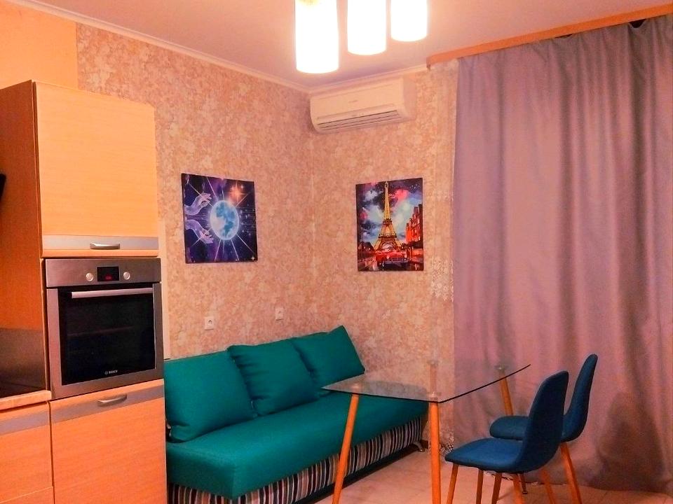 Кімната 21 кв.м, велика кухня-вітальня 17 кв.м (на кухні є спальне місце - розкладний диван).
