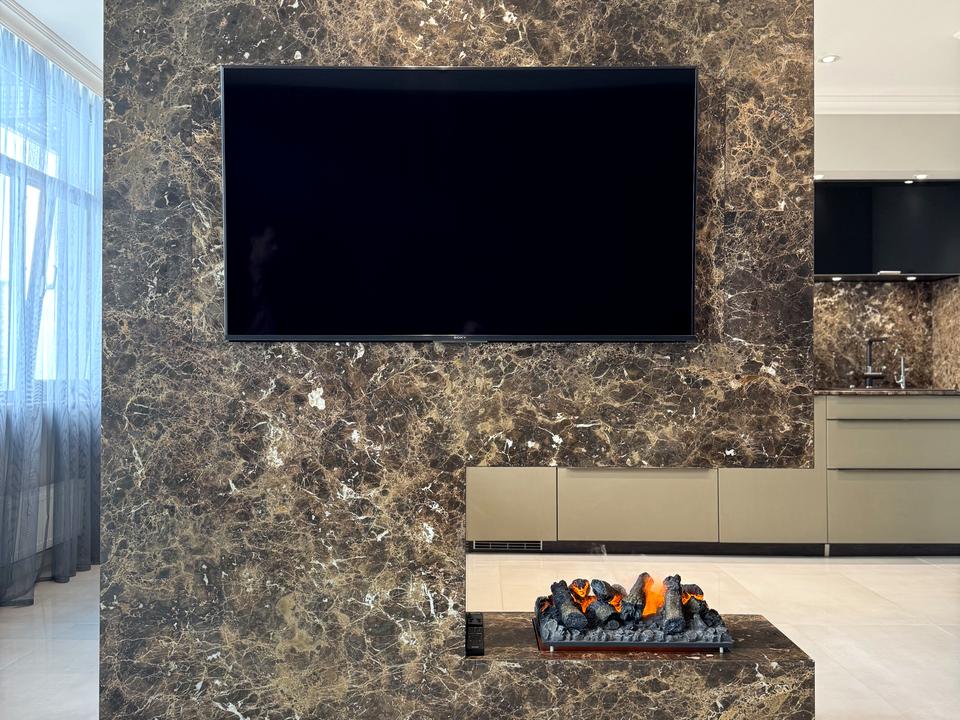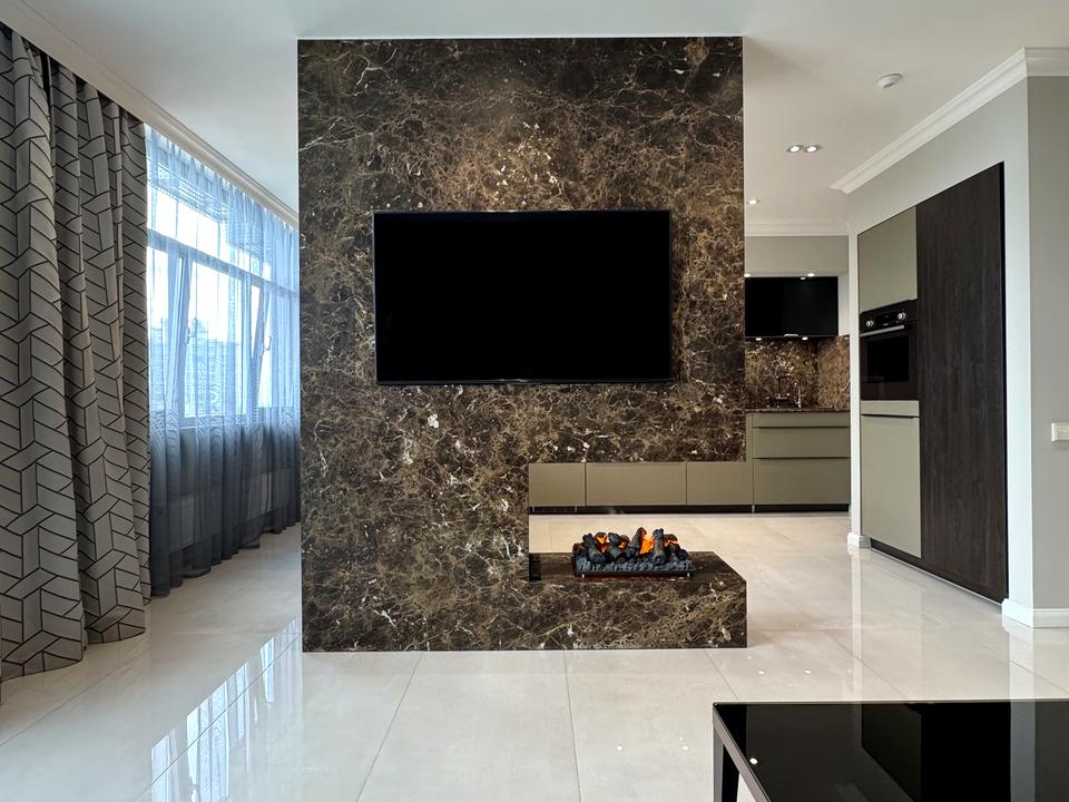 Меблі, оздоблення (мармур та дерево) та кухня европейського виробництва