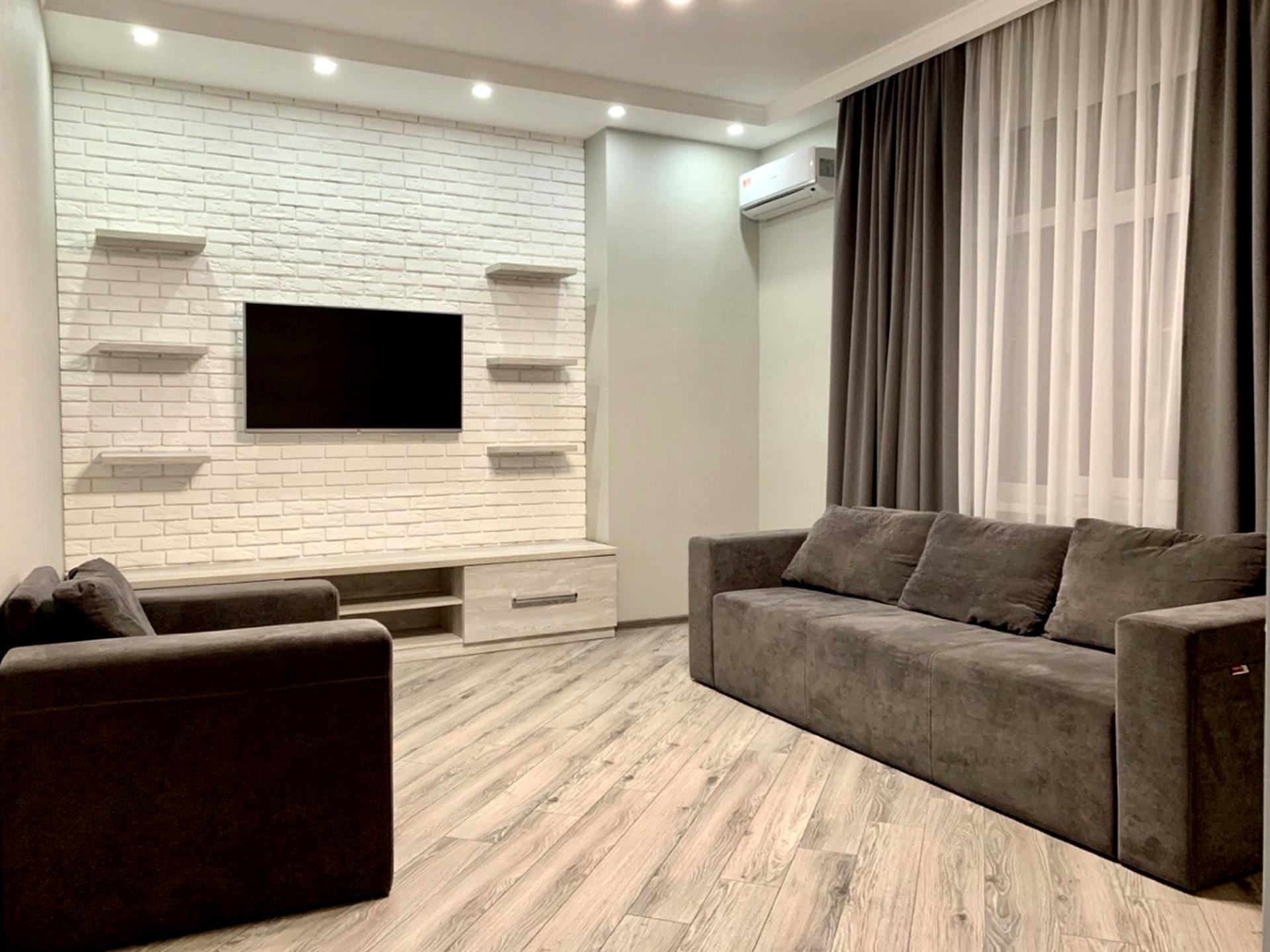 Планування: простора кухня, 2спальні, 2санвузла, просторий балкон. Квартира мебльована та укомплектована всім необхідним для комфортного проживання: нова побутова техніка від європейських виробників, інтернет, 3 кондиціонери, 3 телевізори, 2 бойлери,відеодомофон, праска.