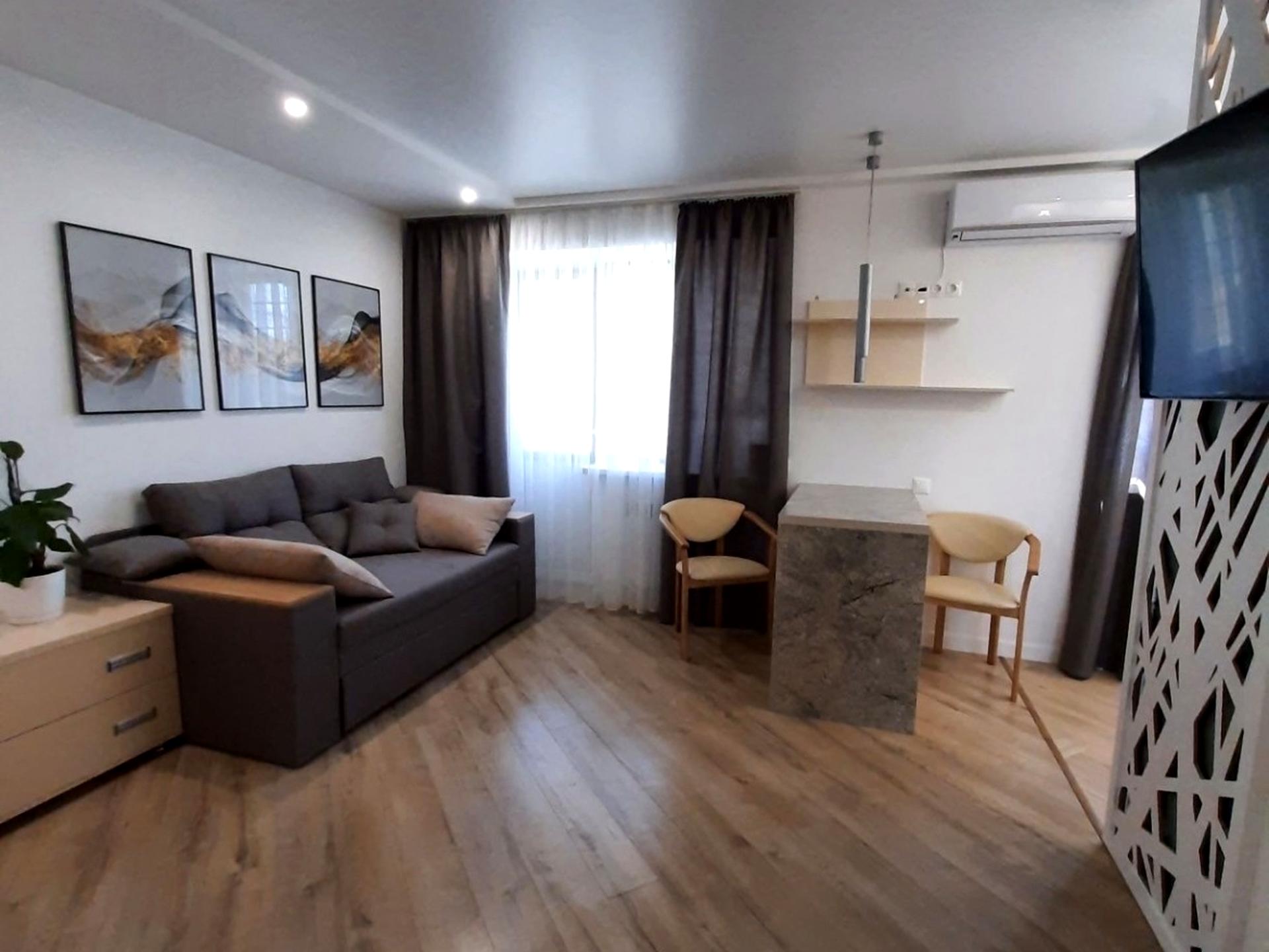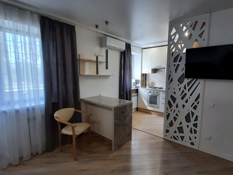Пропонується на довготривалу оренду однокімнатна квартира-студія 33 кв. м.на 4 поверсі 5-поверхового цегляного будинку за адресою:вул. Академіка Навашина, 9 (площа Шевченка) Капітальний ремонт 2021 року з переплануванням та заміною всіх комунікацій. Нові меблі, нова побутова техніка (сучасний кондиціонер, холодильник, пралка, бойлер, газова варильна панель, електродуховка, мікрохвильова піч, електрочайник, пилосос, праска+дошка, без телевізора) та нова сантехніка. Без ванної кімнати (душова кабіна). Повноцінне двоспальне ліжко 160 см з ортопедичним матрацом + диван, що розкладається. Авторський дизайн. Бронедвері з надійними замками. Домофон. Тепла підлога. Проведено інтернет, підключено роутер. Засклений балкон з виносом та нішами-полками. Вікна виходять на південь, квартира реально тепла і світла.