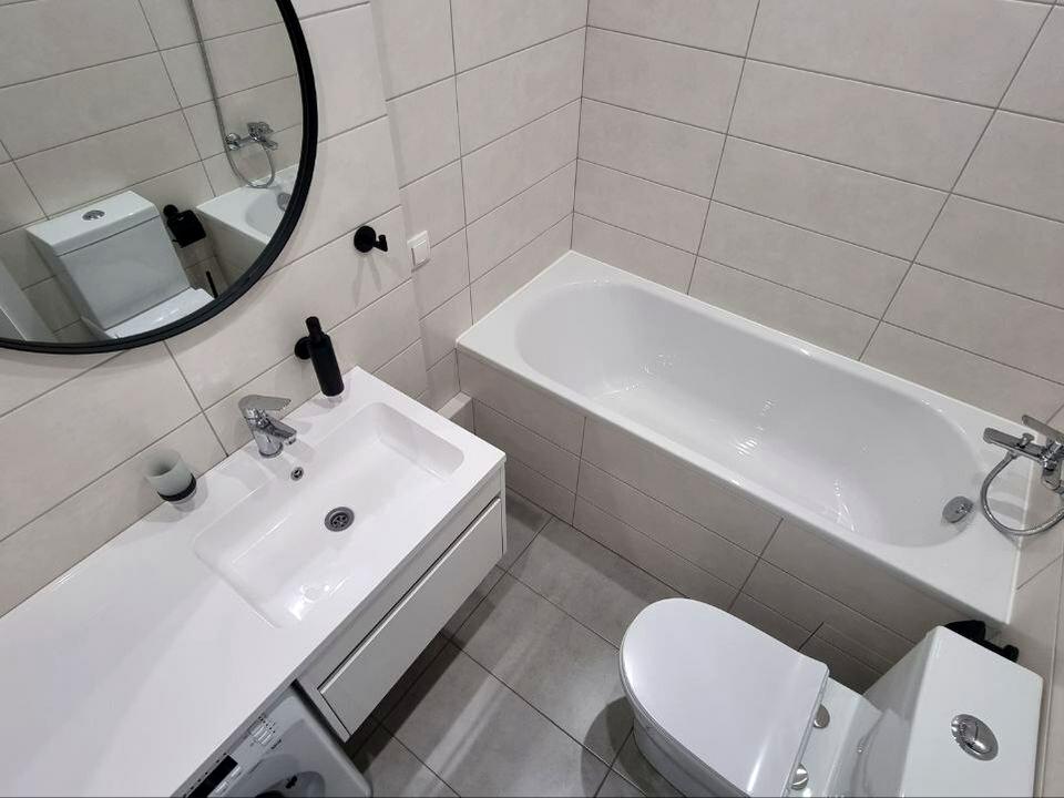 Укомплектована вбудованою кухнею, холодильником, пральною машиною автомат, кондиціонером, бойлером.