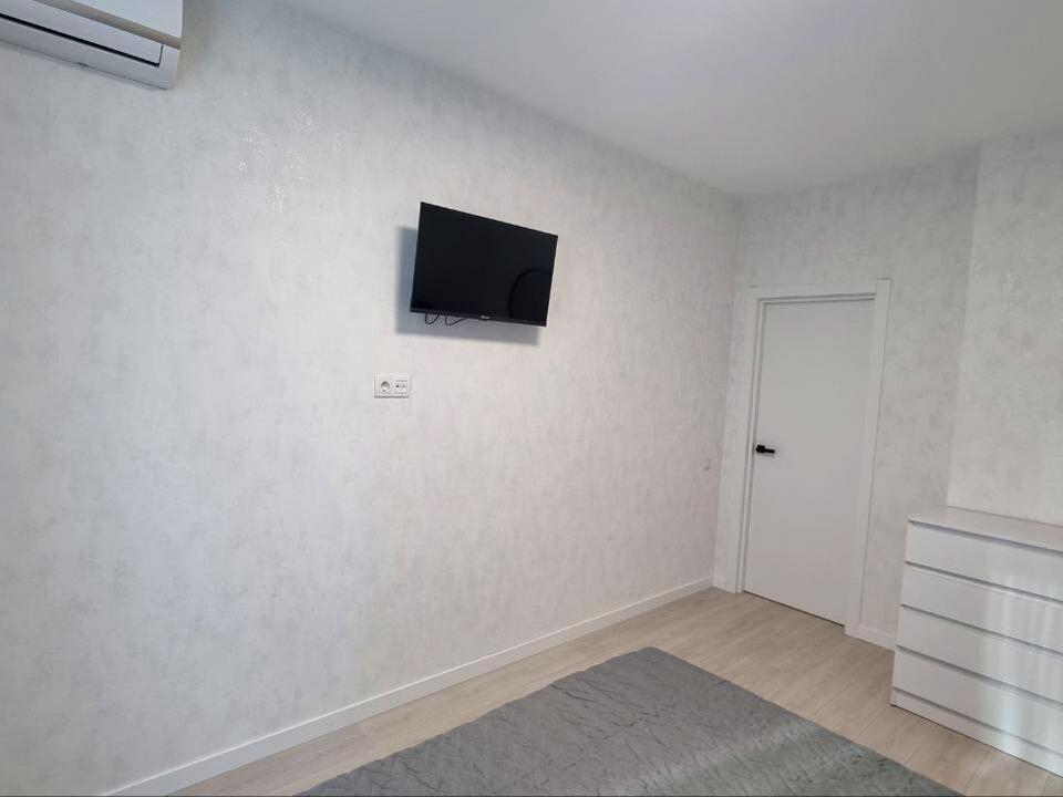 В спальні двоспальне ліжко, телевізор.