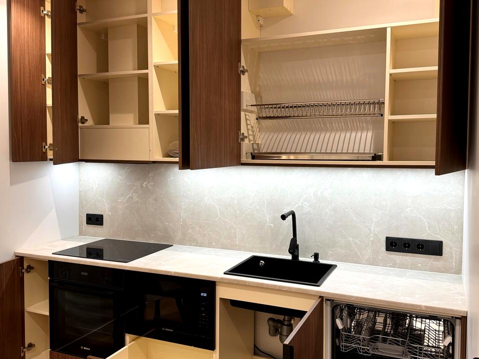 Дуже зручне, стильне планування: спальня, кухня-гостинна,є. Багато місця для зберігання особистих речей, великий санвузол.