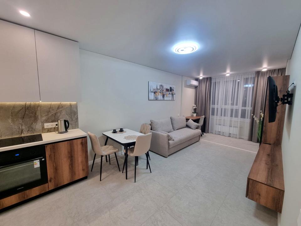 Затишна 2-кімнатна квартира 9/25 пов. 56 кв.м. Кухня- студіо,спальня ,сумісний санвузол з ванною і прихожа.