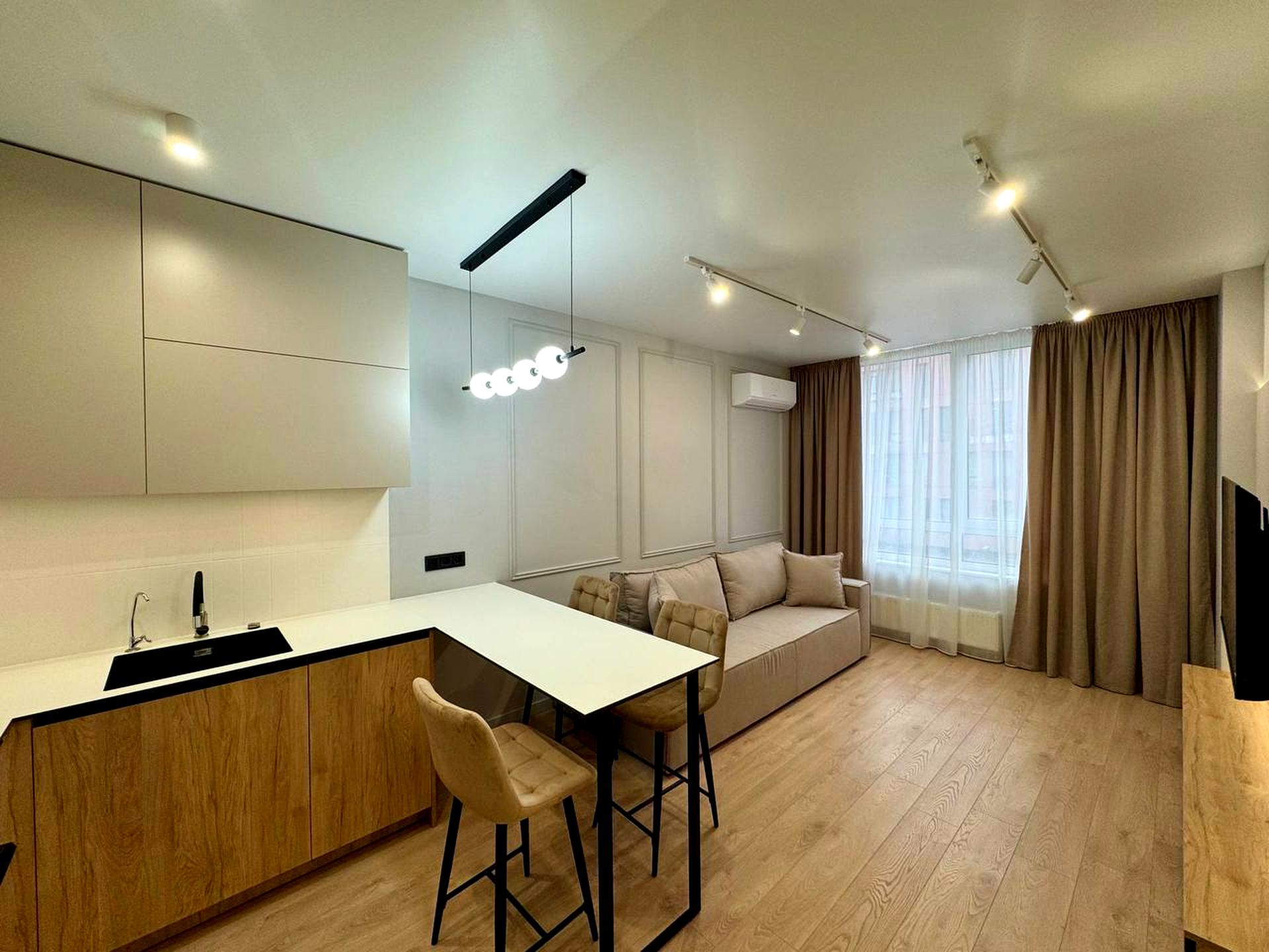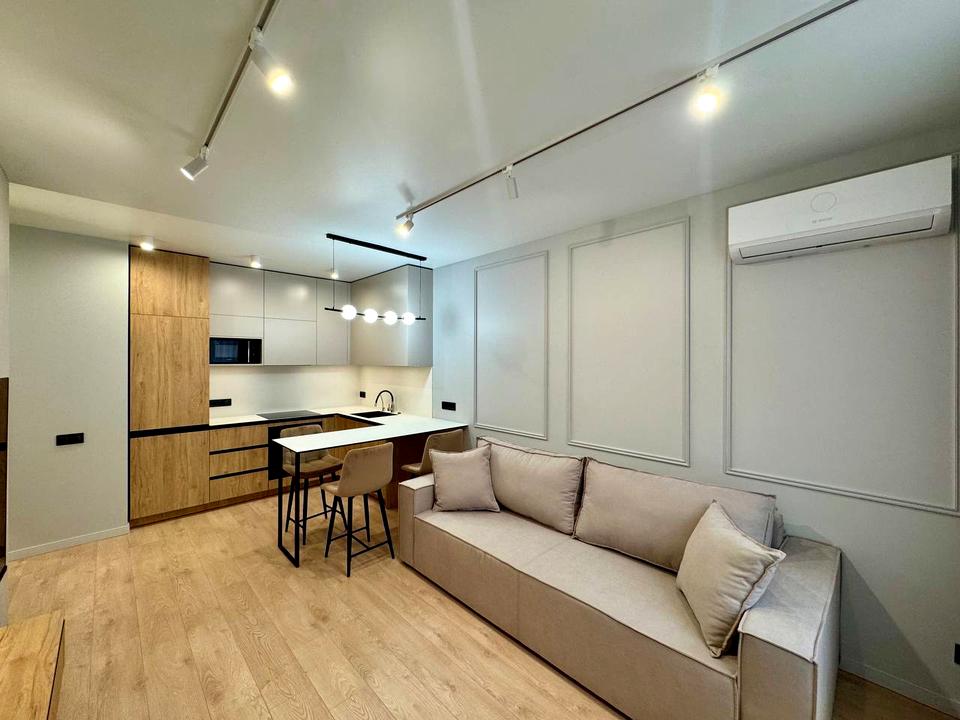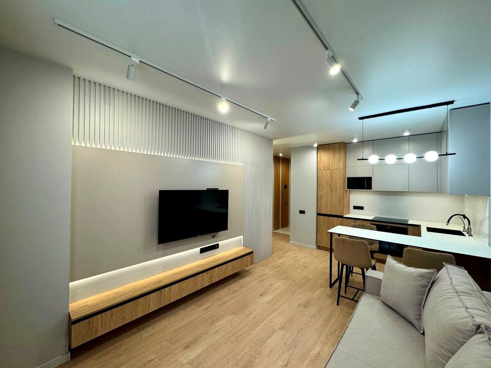 Оренда 2к квартири в ЖК бізнес класу Файна Таун. У квартирі виконаний якісний дизайнерський ремонт, а також комплектація новими меблями та побутовою технікою: холодильник, варильна індукційна поверхня, духовий шкаф, посудомоєчна машина, бойлер, 2 кондиціонери, прально-сушильна машина, 3 Smart TV, Wi-Fi, нова сантехніка. Зручне планування: кухня-вітальня з розкладним диваном та Smart TV, окрема спальня та окрема кімната. У спальні 2-х спальне ліжко з ортопедичним матрацом. 3 великі вбудовані шафи купе в коридорі, ктмнаті та спальні, обладнані полицями, штангою для одягу. Тепла підлога в коридорі та у ванній кімнаті. Встановлений дорогий фільтр питної води. Панорамні вікна у кожній кімнаті. Є балкон.