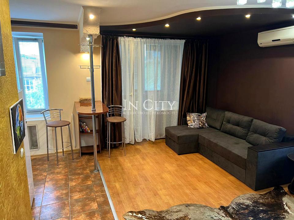 В квартирі 1 кімната, Технологія будівництва - Цегляна. Вид з вікон у двір. Квартира перепланована, планування кімнат Студія. Є газ, кухонна плита газова. Гаряча вода - електричний бойлер. Опалення центральне. Суміщений санвузол, Туалет/ванна. Вікна металопластикові. В квартирі є Телевізор, Кабельне ТБ, Шафа, Ліжко, Кондиціонер, Пральна машина, Холодильник, Мікрохвильовка, Лічильники. Загальний стан квартири - З ремонтом. Поруч є школа, дитсадок, зупинки, розважальні заклади, супермаркет, парк. Працює без світла - вода, газ, опалення, інтернет. Комісія за послуги 50 %