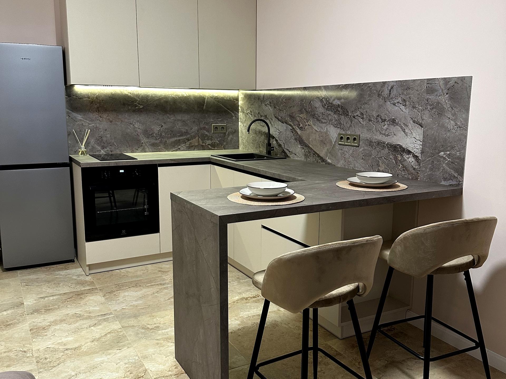 Перша здача, квартира щойно після ремонту, повністю укомплектована всіма необхідними меблями та технікою для проживання однієї або двох осіб.