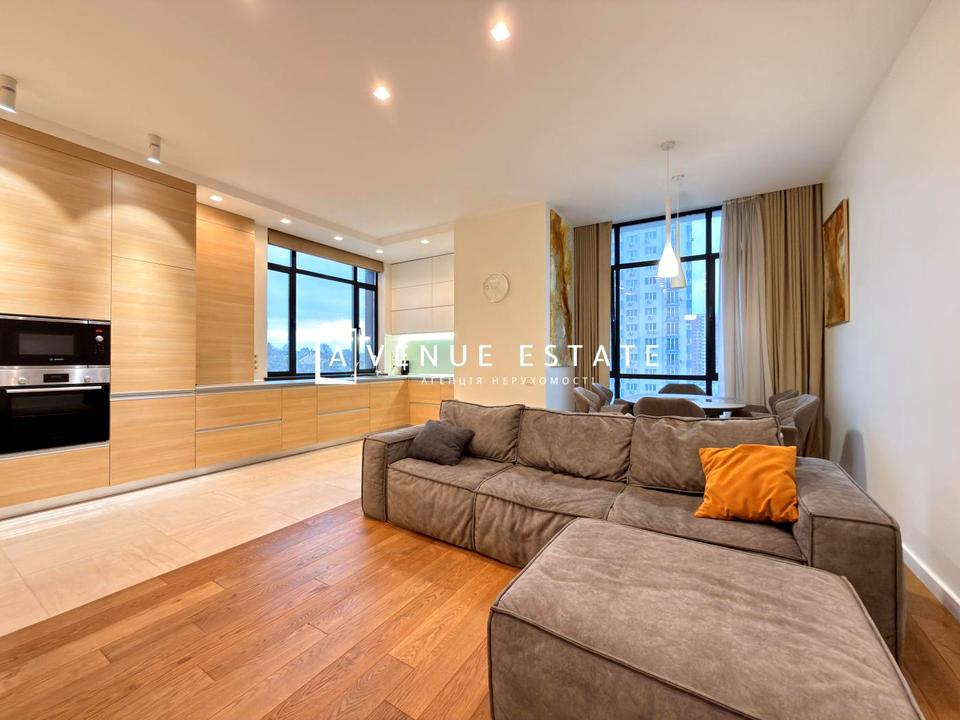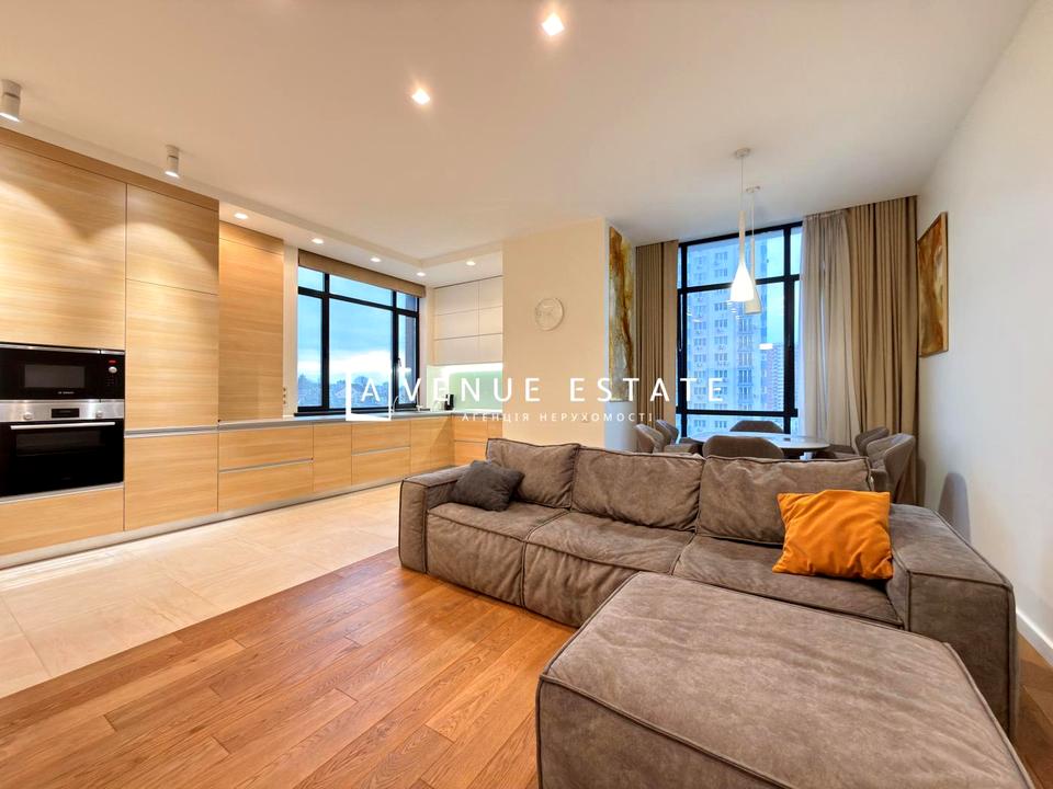 Ремонт у сучасному стилі! Вдале та функціональне планування: передпокій з гардеробною кімнатою та гостьовим с/у, кухня –вітальня з обідньою зоною на 6-8 персон та панорамними вікнами, високі стелі-3м., два санвузли, дві спальні вікна яких виходять на тиху та зелену вулицю. Квартира повністю мебльована новими меблями: вбудована кухня, комфортний диван, два двоспальні ліжка з ортопедичними матрацами, для зберігання речей є шафи та комоди. У санвузлах душ-кабіна та ванна, сантехніка Devit, пральна зона. Комфорт проживання вам забезпечить підігрів підлоги з таймерами, кондиціювання, шумоізоляція. Передбачений доступ до wi-fi, планшет для зв'язку з охороною, дубова паркетна дошка на підлозі по всій квартирі. Повна комплектація побутовою технікою від виробника «Bosch», є посудомийна машина, двокамерний
