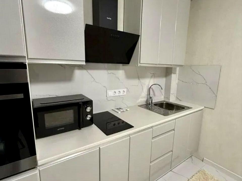 Квартира з новим євроремонтом, після ремонту ніхто не проживав. Зручне та функціональне планування: окрема кімната, простора кухня, суміщений санвузол. Виконаний сучасний ремонт у світлих тонах з використанням якісних матеріалів. Квартира повністю укомплектована меблями та побутовою технікою: кухонний гарнітур, варильна поверхня, духова шафа, холодильник, пральна машина, 2 кондиціонера, телевізор 4к, двоспальне ліжко та розкладний диван на кухні, містка шафа-купе та шафа у спальні.