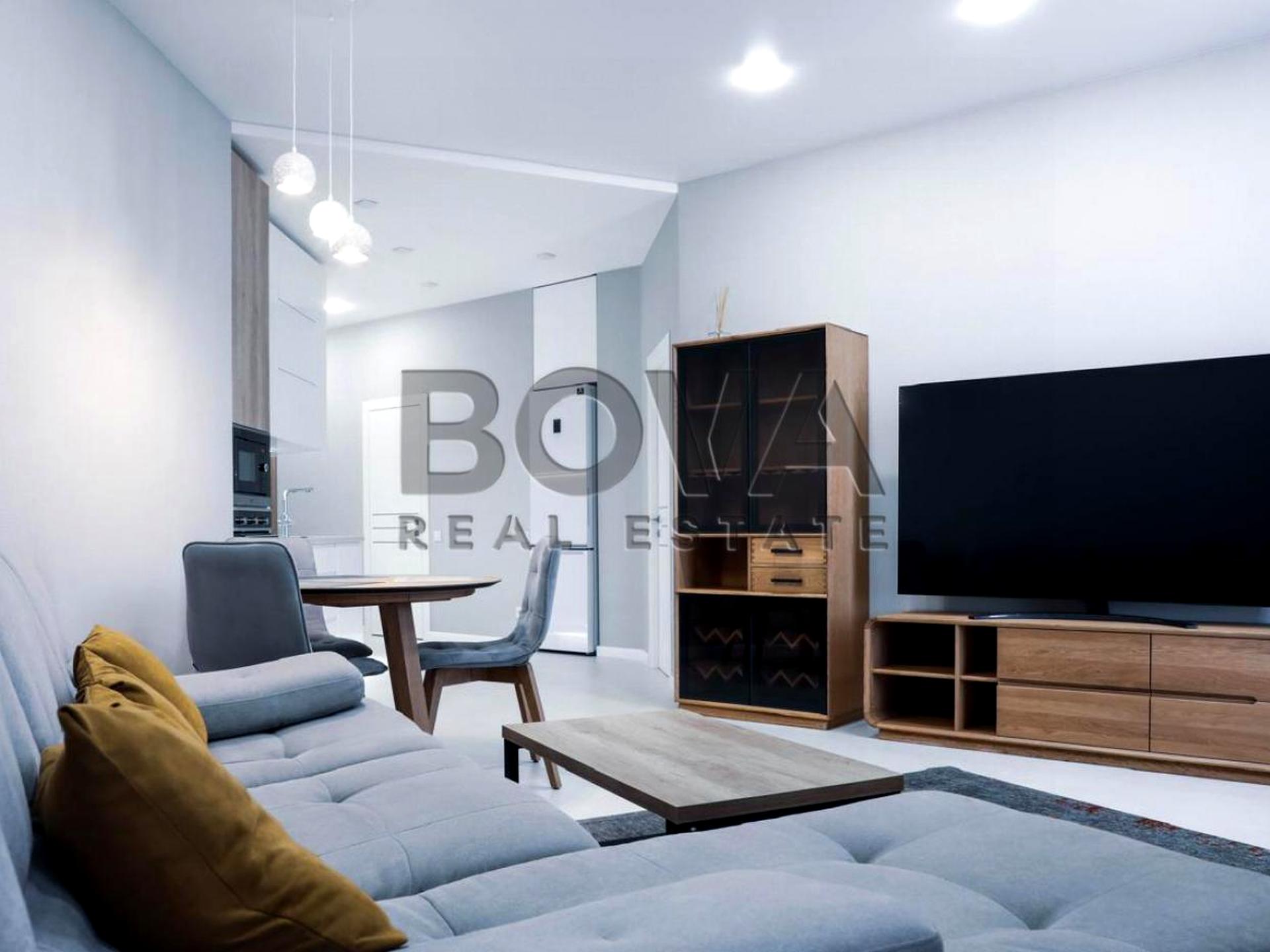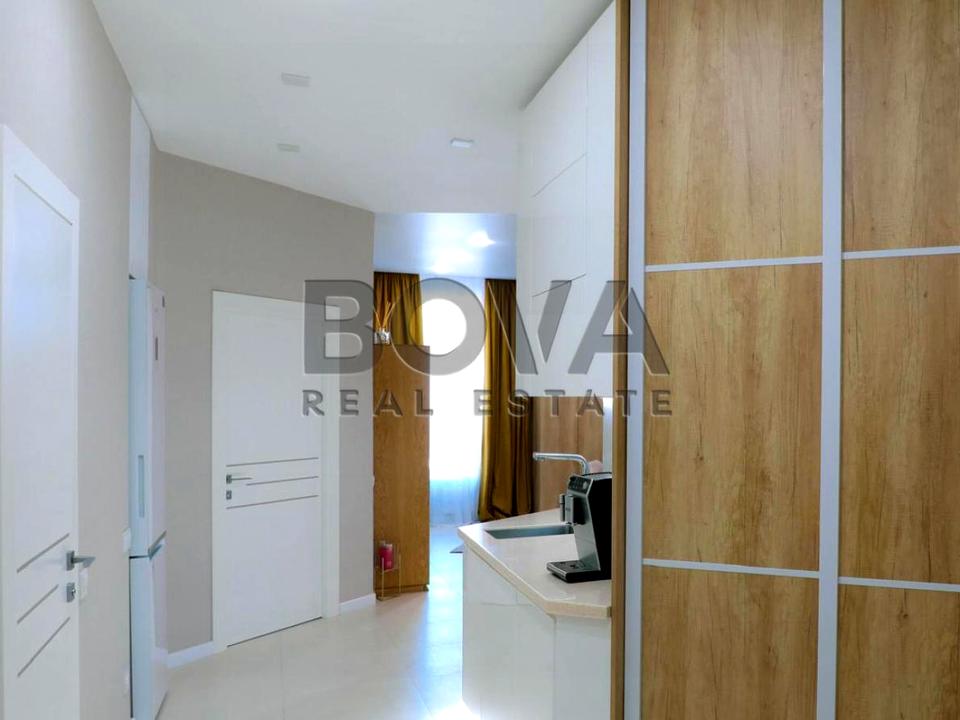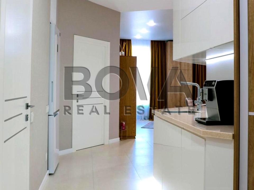 Квартира з якісним ремонтом, виконаним із дорогих матеріалів, у стриманих, але водночас теплих тонах. Оснащена всіма необхідними меблями та побутовою технікою від провідних світових виробників. Із вікон відкривається чудовий панорамний краєвид на місто.