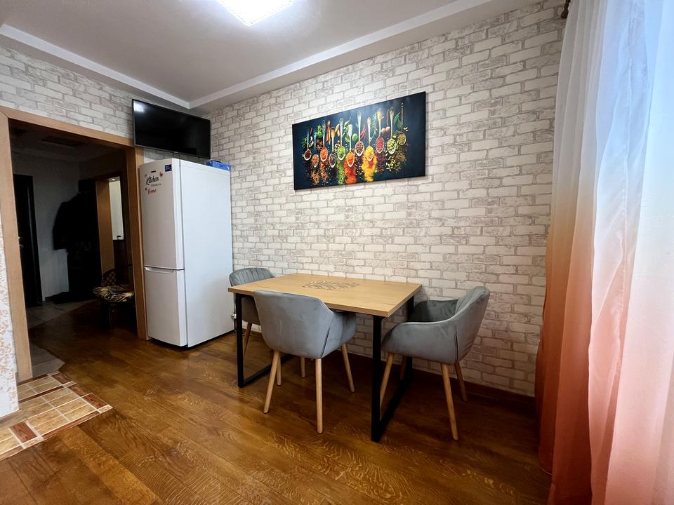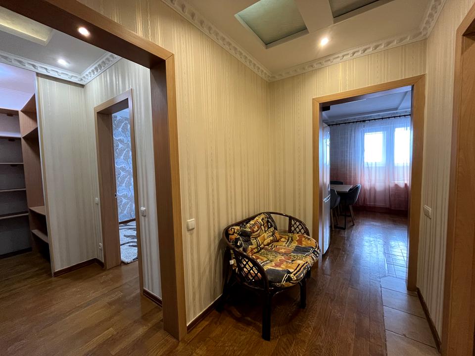 Пропонується в довгострокову оренду дуже затишна однокімнатна квартира великої площі — 52 кв. м, з гардеробною та всім необхідним для комфортного проживання. У квартирі зроблено свіжий косметичний ремонт. У наявності кондиціонер, бойлер, холодильник, пральна машина. Великий утеплений балкон з гарним панорамним видом. Нове ліжко та матрац, новий бойлер. На кухні — нова стільниця.