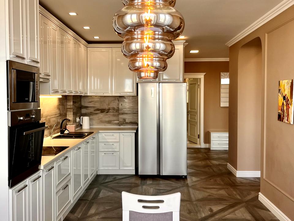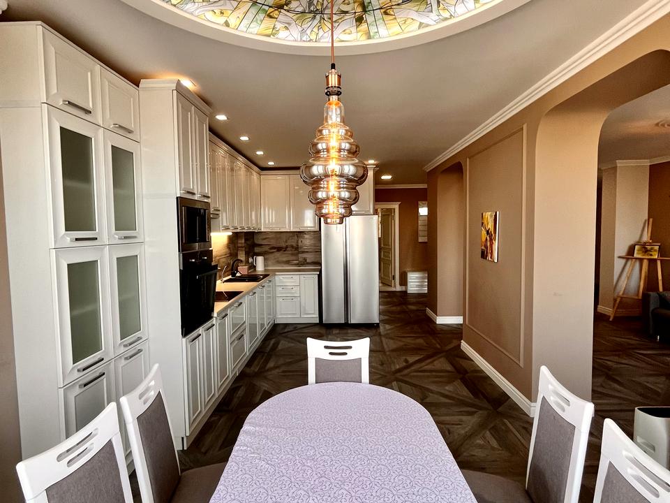 Предлагаем вашему вниманию восхитительную четырёхкомнатную квартиру в сердце Киева, на улице Дмитриевской, 75. Эта квартира впечатляет своим пространством и элегантным дизайном. Внутри вас ждут уютная кухня-гостиная, две изысканные спальни, стильный кабинет, который можно использовать как третью спальню, и два роскошных санузла – один с душевой кабиной, другой с джакузи и окном.