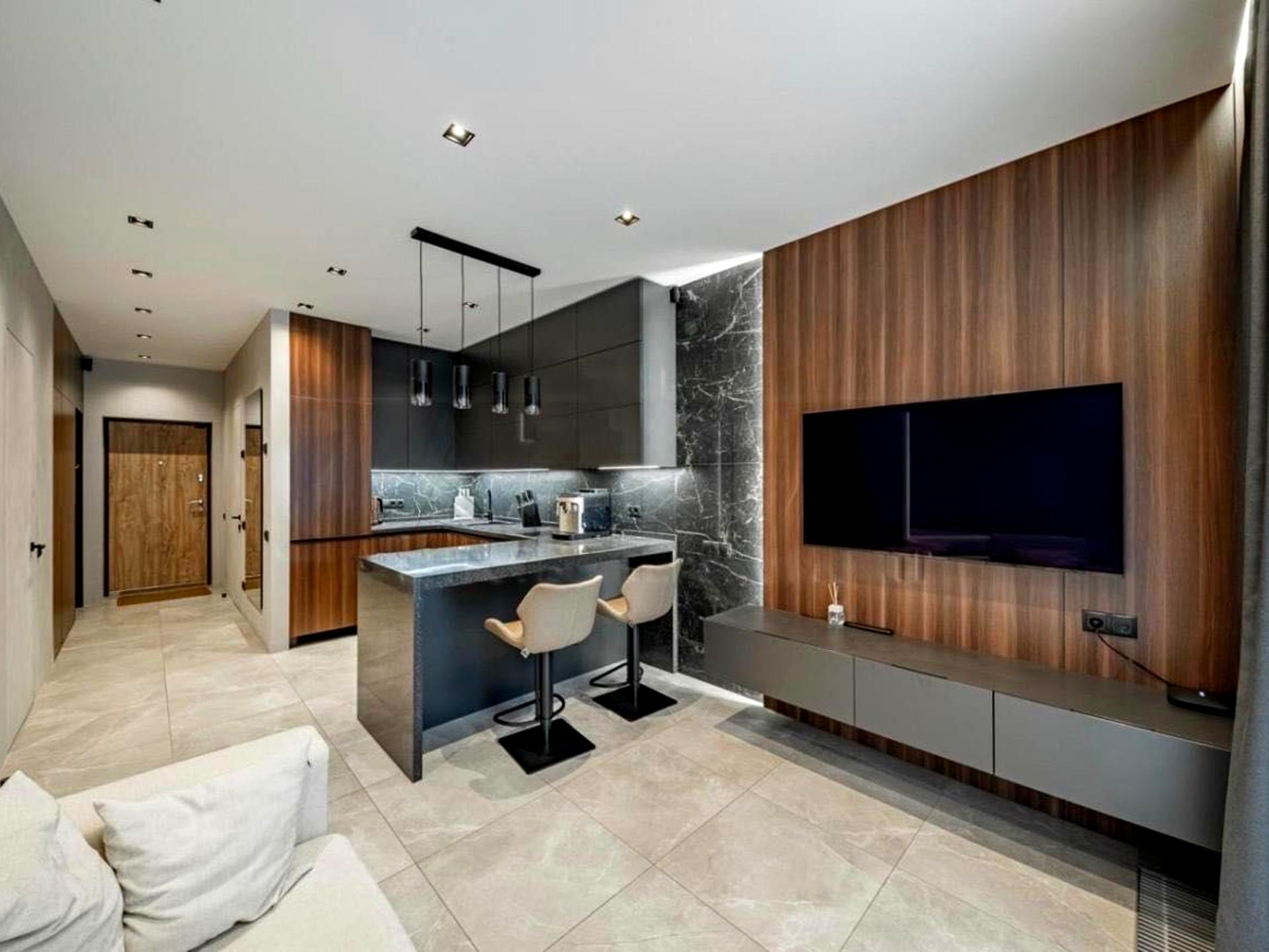 2 великі смарт-телевізори — у вітальні та спальні.