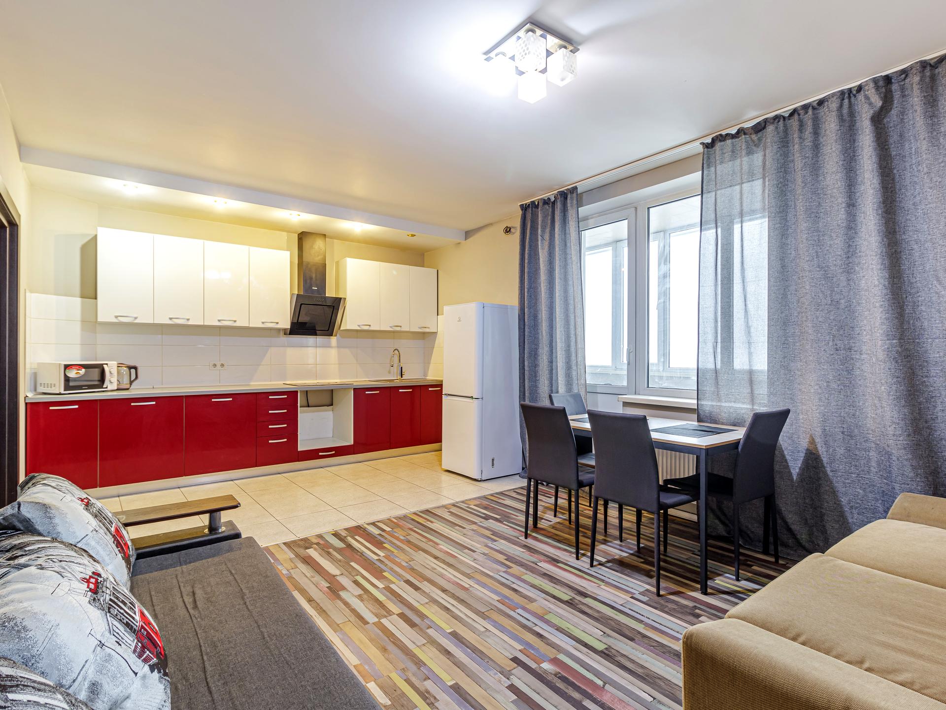 Здається в оренду простора двокімнатна квартира на вул. Олевська, 5. Раціональне планування: кухня-вітальня для щоденного життя та прийому гостей, окрема спальня, велика лоджія з відкритим видом на ліс.