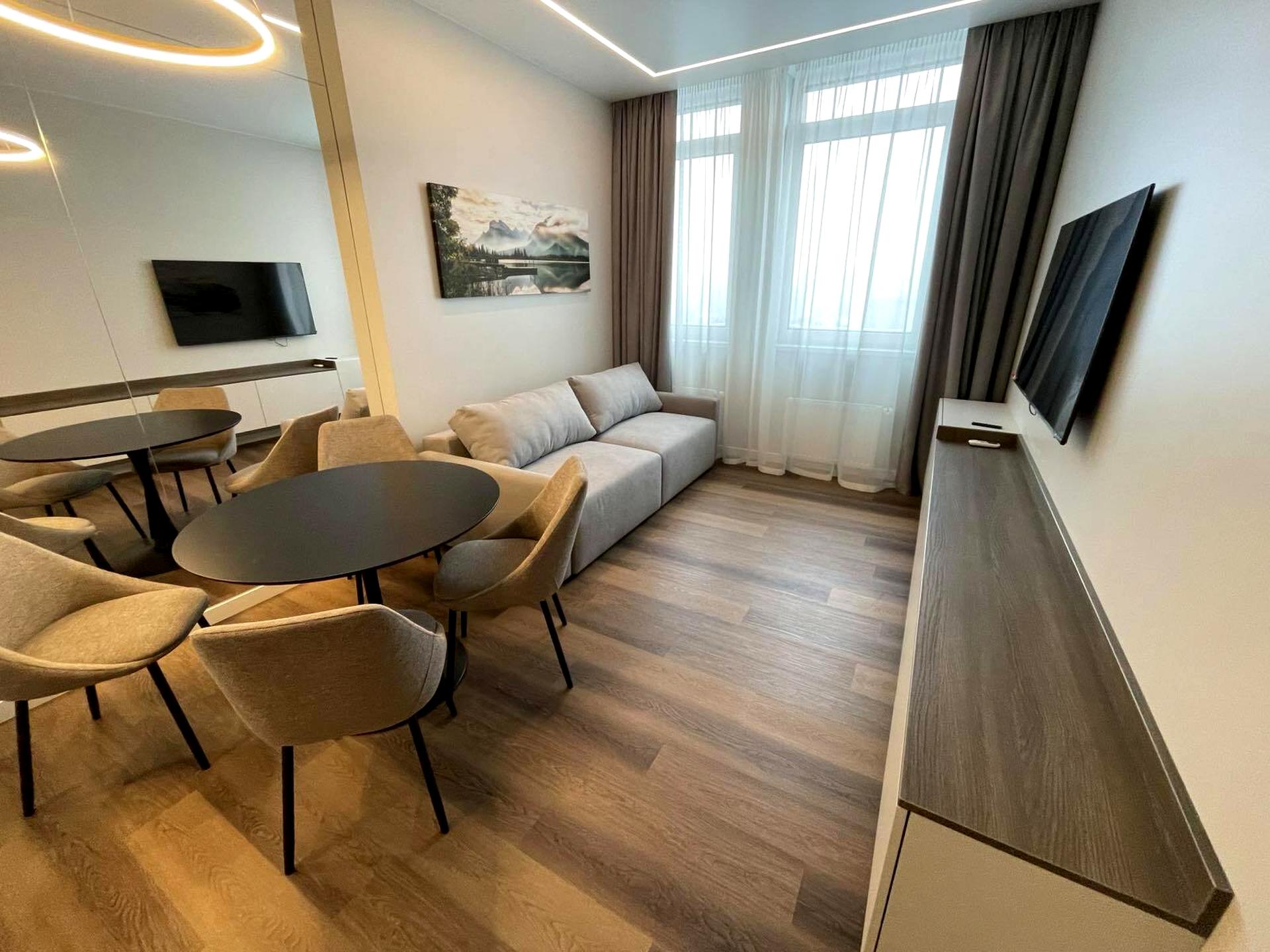 Квартира повністю укомплектована меблями та побутовою технікою світових виробників, готова до заселення.
