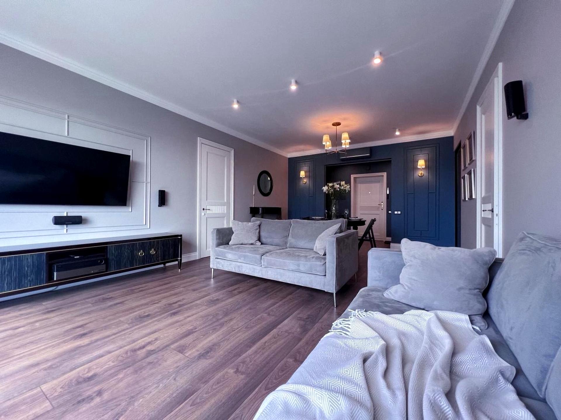Простір оформлений у сучасному стилі, з логічним зонуванням і акцентом на зручність щоденного життя в преміальному середовищі.