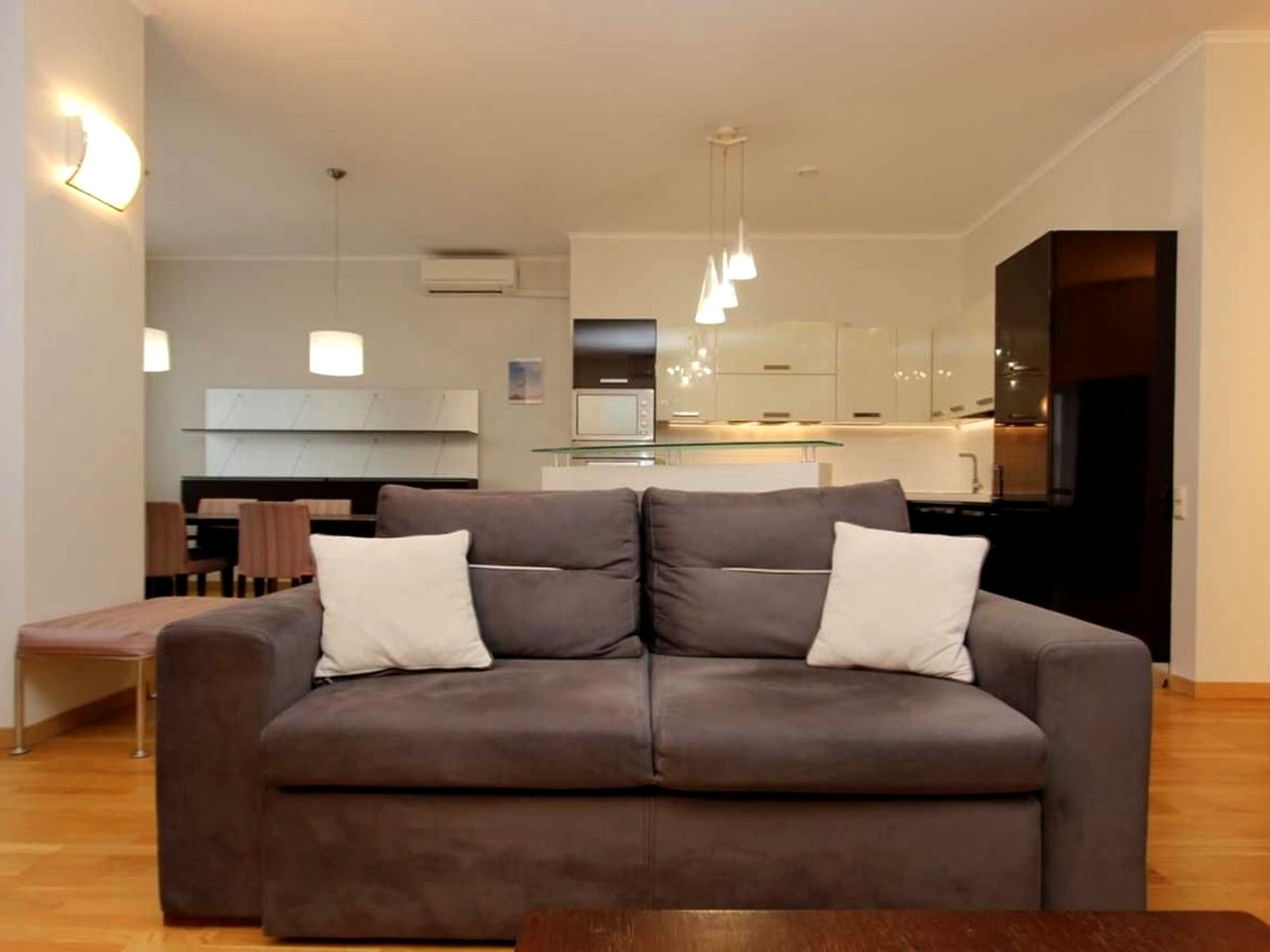Квартира повністю мебльована, вся необхідна побутова техніка, якісна кухня з вбудованою технікою.