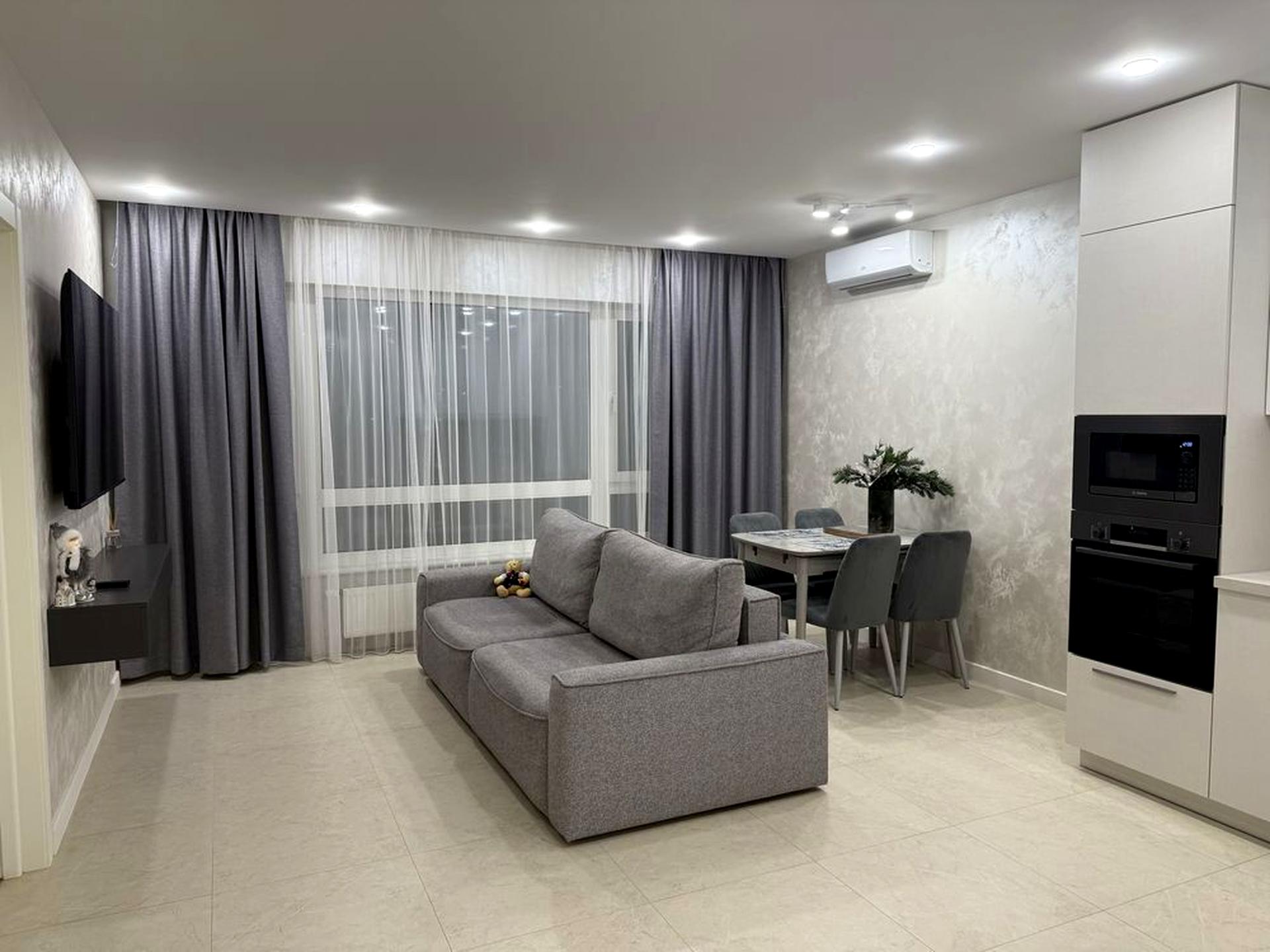 Мʼякі меблі та італійське освітлення виглядає гостинно і просторо