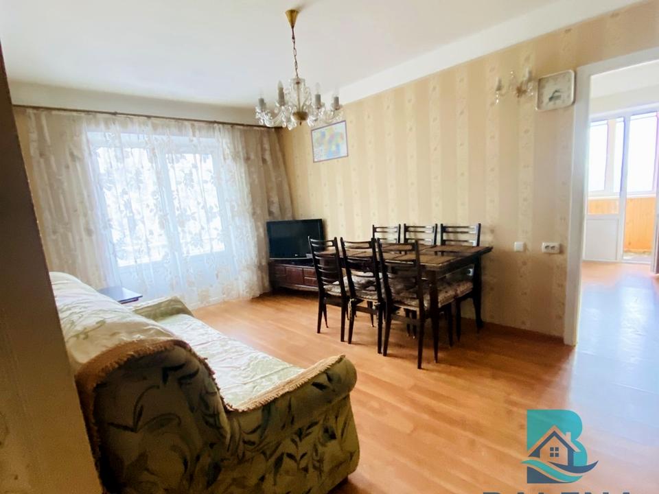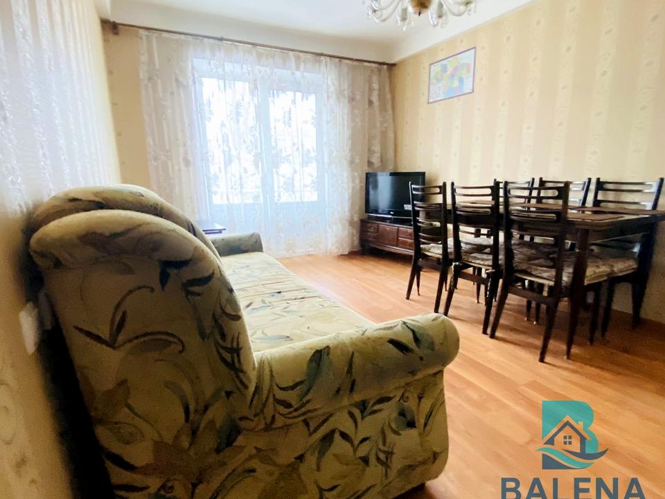 У квартирі є всі необхідні меблі: шафи, 5 спальних місць, два столи, стільці та табуретки, розраховані на велику сімю, а тако ж побутова техніка: бойлер,великий холодильник з морозильною камерою, пральна машина, газова плита- це велика перевага в теперішній час, коли вимикають свтло, кондиціонер, телевізор, роутер, мікрохвильовка, пилесмок, єлектрочайник. Дві кімнати -суміжні, одна кімната -окрема. В будинку центральне опалення, то ж в квартирі тепло. Квартира має балкон, який виходить у двір, а тако ж вікна в квартирі мають виход у двір будинку. З третьоі кімнати є вихід на гарну з ремонтом лоджію, де можна зробити куточок для відпочинку та попити кави.