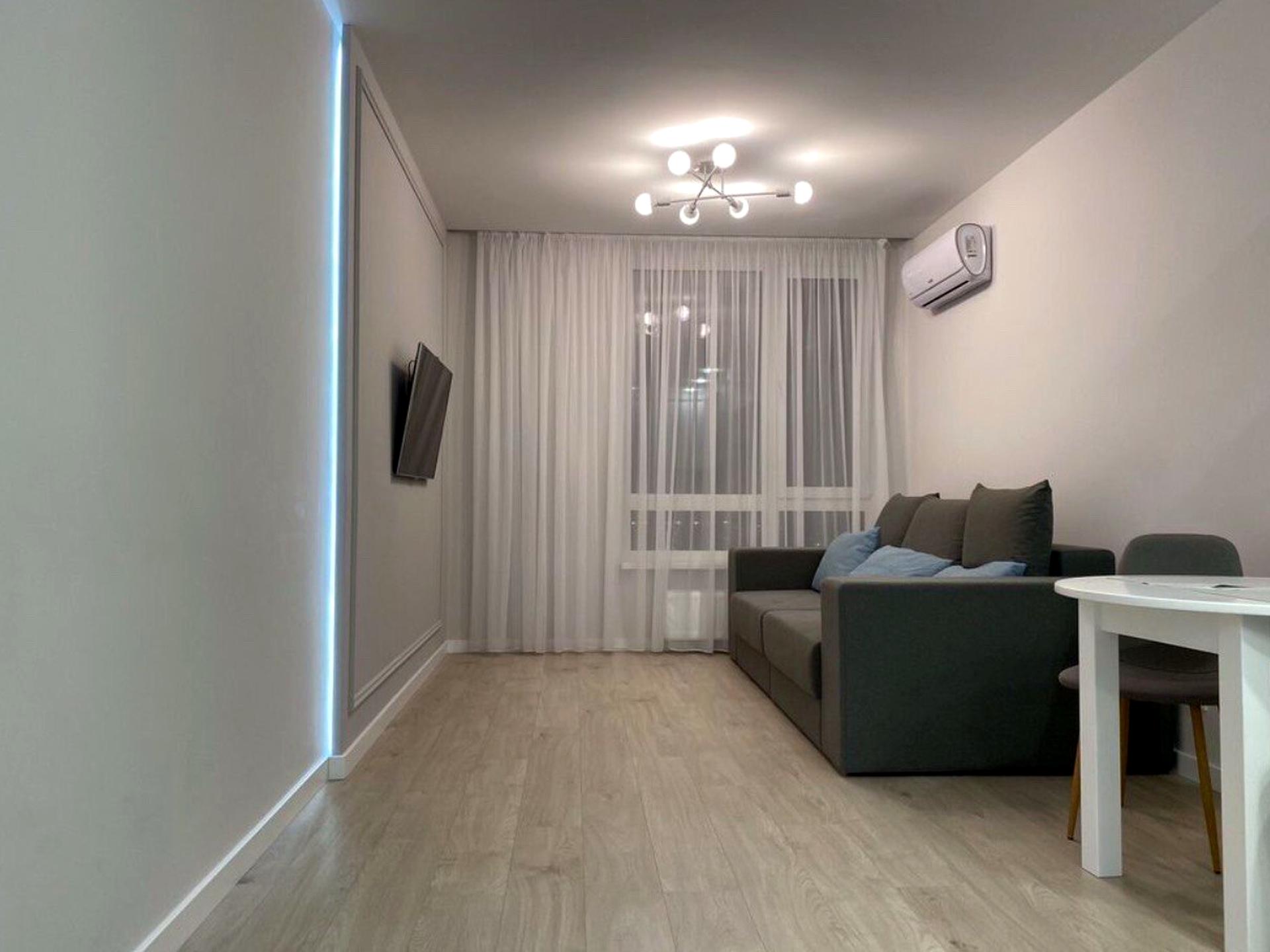В квартирі 1 кімната, Технологія будівництва - Монолітно-каркасна, Тип будинку - Спец. проект. Планування кімнат Роздільне. В квартирі є Телевізор, Супутникове ТБ, Шафа, Ліжко, Підігрів підлоги, Кондиціонер, Пральна машина, Холодильник, Мікрохвильовка, Посудомийна машина, Сигналізація, Лічильники. Будинок побудований в 2018 році. Загальний стан квартири - З ремонтом. Працює без світла - вода, опалення, інтернет, ліфт. Комісія за послуги 50 %