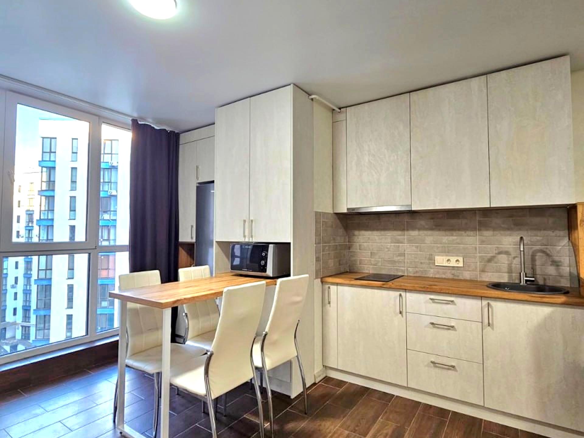 В квартирі 1 кімната, Технологія будівництва - Монолітно-каркасна, Тип будинку - Спец. проект. Планування кімнат Студія. В квартирі є Телевізор, Шафа, Підігрів підлоги, Кондиціонер, Пральна машина, Холодильник, Мікрохвильовка, Посуд, Сигналізація, Лічильники. Будинок побудований в 2020 році. Загальний стан квартири - З ремонтом. Надання документів. Безбар'єрність: пандус. Працює без світла - вода, газ, опалення, інтернет. Комісія за послуги 50 %