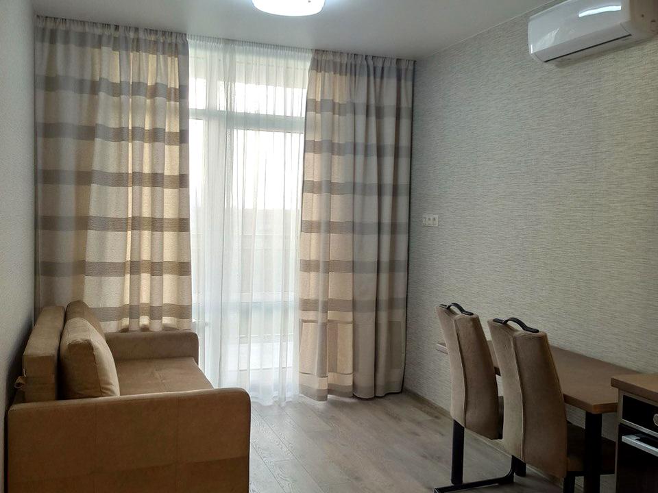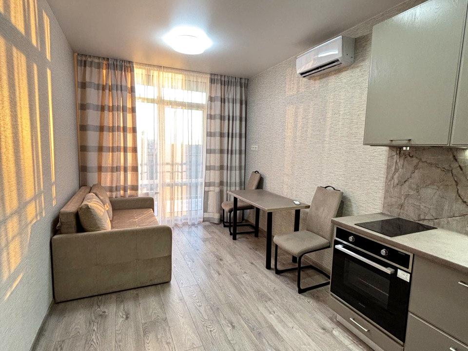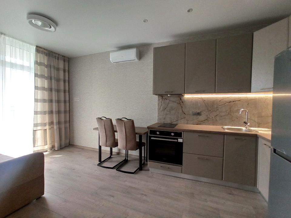 В квартирі 1 кімната, Технологія будівництва - Монолітно-каркасна, Тип будинку - Спец. проект. Планування кімнат Роздільне. Немає газу, кухонна плита електрична. Є балкон. У квартирі є Кондиціонер, Пральна машина, Душова кабіна, Ванна, Холодильник. Будинок побудований в 2022 році. Загальний стан квартири - З ремонтом. Кількість санвузлів: 1. Працює без світла - вода, ліфт. Тип кухні - кухня-студія. Кількість спален: 1. Комісія за послуги 50 %