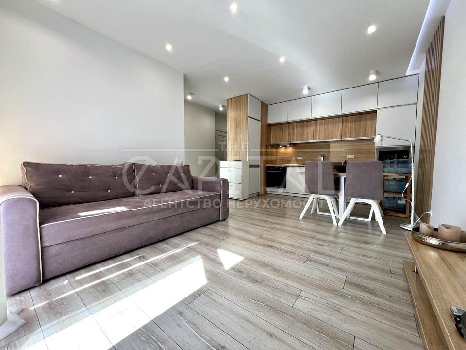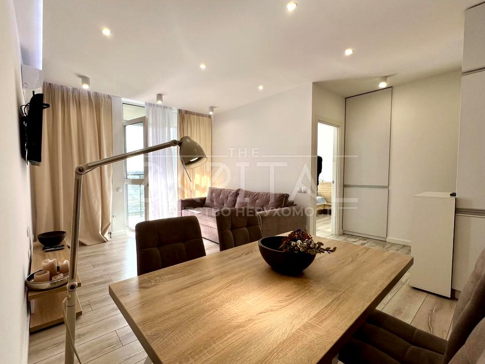 У квартирі виконано сучасний дизайнерський ремонт із використанням якісних матеріалів. Квартира повністю укомплектована меблями та всією необхідною побутовою технікою для комфортного проживання. Вітальня зона обладнана зручним диваном та вбудованою кухнею. Окрема спальня оснащена великим двоспальним ліжком з ортопедичним матрацом та просторою шафою-купе. Завдяки панорамним вікнам квартира наповнена природним світлом та має приємний вид на місто. Також є балкон. Санвузол просторий, обладнаний великою ванною.