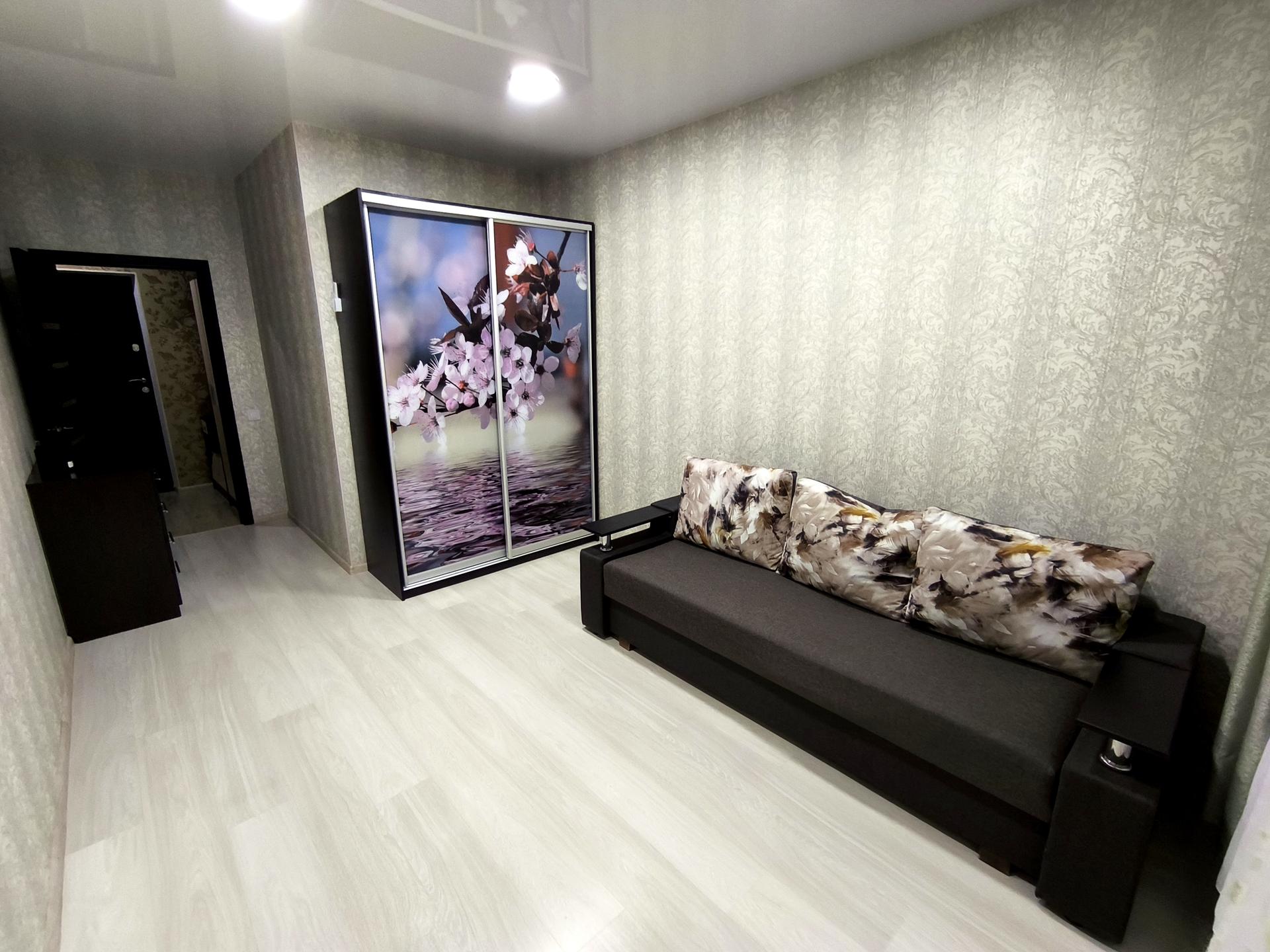 У квартирі гарний ремонт. Є пральна машина, холодильник, мікрохвильова піч, шафа-купе, стіл та стільці, ванна кімната, бойлер на 80 літрів, на підлозі кахель, в кімнаті ламінат, диван, передпокій, шафка в санвузлі, кондиціонер, балкон засклений якісними склопакетами, інтернет, натяжні стелі.