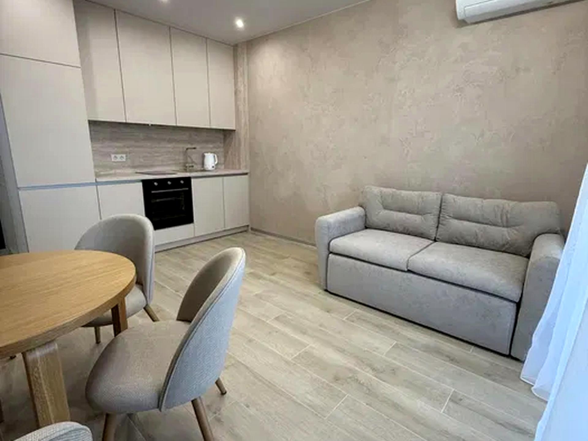 В квартирі 1 кімната. Планування кімнат Роздільне. В квартирі є Шафа, Ліжко, Кондиціонер, Пральна машина, Сушильна машина, Душова кабіна, Холодильник, Посудомийна машина, Лічильники. Будинок побудований в 2024 році. Загальний стан квартири - З ремонтом. Працює без світла - вода, опалення, інтернет, ліфт. Комісія за послуги 50 %