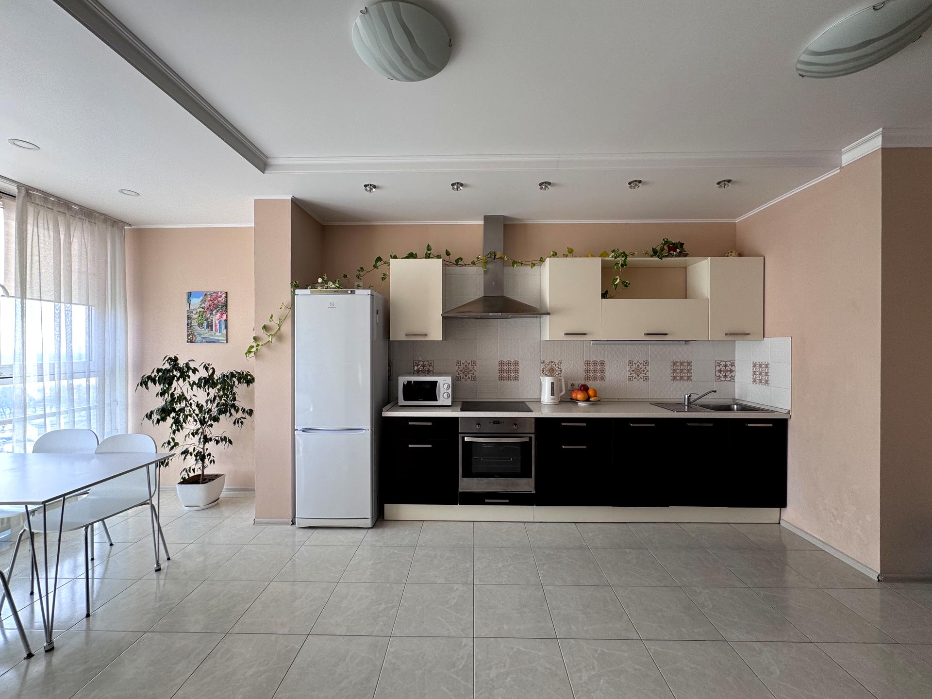 Квартира з меблями та побутовою технікою. Є кондиціонер,є посудомийна машина ,багато вбудованих місць для зберігання, різні варіанти освітлення. Підлога – ламінат, у санвузлах – плитка. Індивідуальний лічильник тепла на квартиру . На будинку своя котельня.